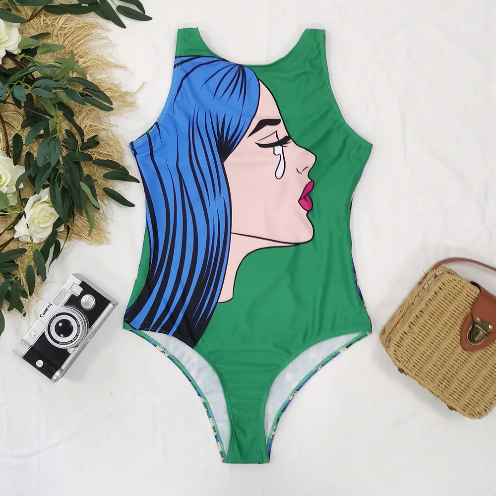 Женский купальник с принтом, слитный купальник с пуш-ап и открытой спиной, размера плюс