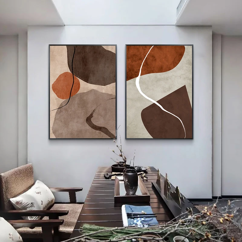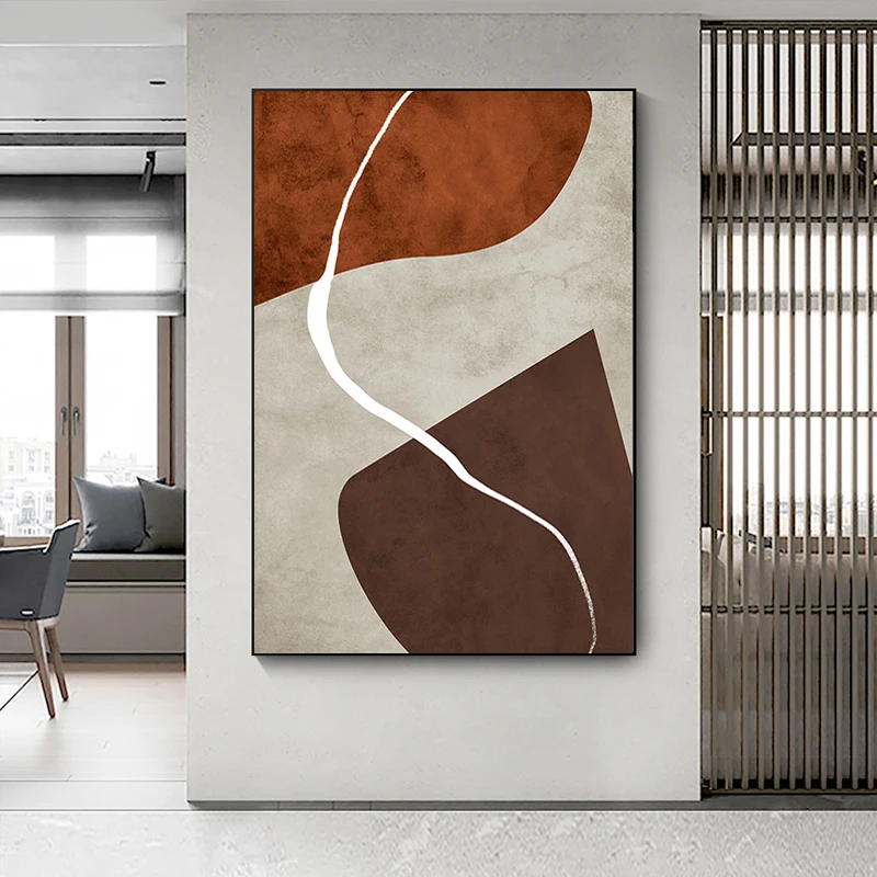 Настенная живопись, абстрактное искусство, коричневые блоки, минималистские картины для гостиной, офиса