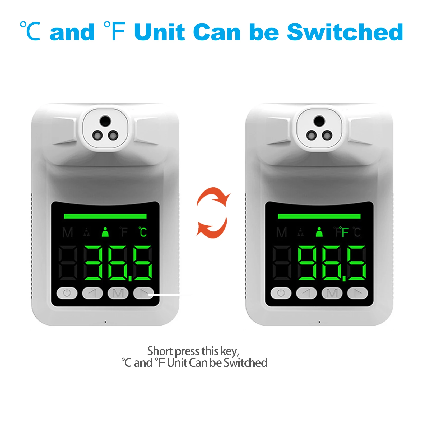 Настенный Бесконтактный инфракрасный термометр может измерять температуру в пределах 1-10 см от лба в пределах 1 с, надежное и Точное отображение показаний на экране. Цельсия и Фаренгейт могут быть переключены. Он также поддерживает на каждый день, 3 цвета индикатор светильник функция сигнала тревоги. Он может быть установлен на стене или поддерживается штативом и может широко использоваться в домашних условиях, офисах, гостиницах, торговых центрах, супермаркетах, школах, ресторанах, железнодорожных станциях, фабриках и других общественных местах. Особенности: Бесконтактное измерение:Бесконтактный инфракрасный термометр, вам нужно только стоять на расстоянии 1-10 см перед термометром. Избегайте прикосновения к коже, более здоровой и безопасной. Точный и надежный:Термометр для лба оснащен передовой инфракрасной технологией и высокоточным датчиком для получения достоверных и точных показаний в пределах 1 с. °C и °F переключаемый блок:Этот инфракрасный термометр для лба может отображать показания по Цельсию или по Фаренгейту. Диапазон измерения: 32 °C-43 °C/89,6 °F-109,4 °F. 3 способа питания:3 шт. батарейки типа АА (не входят в комплект) или 1 шт. аккумулятор 18650 или 5 в постоянного тока 1A вход с помощью usb-кабеля, три способа питания отвечают различным требованиям. Гибкая установка:Три режима установки поддерживаются. Его можно разместить на штативе или зафиксировать на стене с помощью крючка или двусторонней ленты. Широкое применение:Широко используется дома или на заводах, офисных зданиях, супермаркетах, ресторанах, школах, железнодорожных станциях и других общественных местах. Характеристики: Цвет: белый Материал: АБС-пластик Режим измерения: Бесконтактный Место измерения: лоб Расстояние измерения: 1-10 см Время отклика: 1S Диапазон измерения: 32 °C-43 °C/89,6 °F-109,4 °F Точность измерения: ± 0,2 °C Дисплей: Цельсия (°C) /Фаренгейт (°F) Источник питания: USB DC 5 В или 3 * AA батареи (не входят в комплект) или 1*18650 батареи (не входят в комплект) Функция сигнализации: 32-37,2 ℃ (зеленый светильник), 37,3-37,7 ℃ (оранжевый светильник и сигнализация), 37,8-43 ℃ (красный светильник и сигнализация) Функция памяти: 50 наборов показаний температуры истории Продукт Размеры: 150*100*116 мм/5,9*3,9 * 4.6in Посылка Размеры: 155*124*107 мм/6,1*4,9 * 4.2in Вес посылка: 290 г/10,2 унций Посылка: 1 * термометр 1 * Руководство пользователя 1 * USB кабель 1 * набор аксессуаров