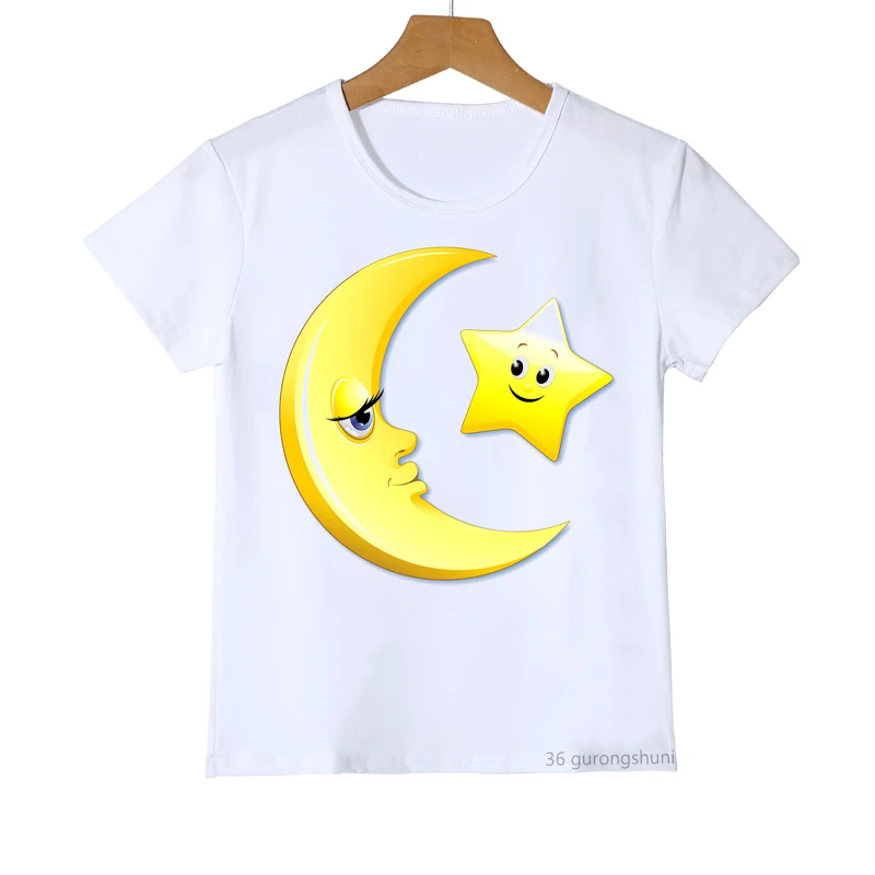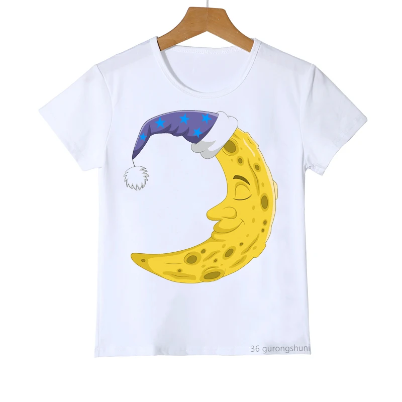 Футболка для мальчиков и девочек, стильная рубашка с забавным графическим принтом луны и звезд, футболка для начинающих ходить детей, милый топ на лето