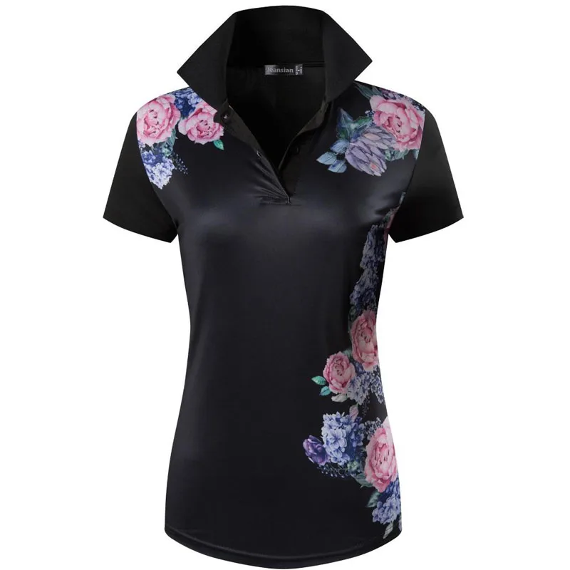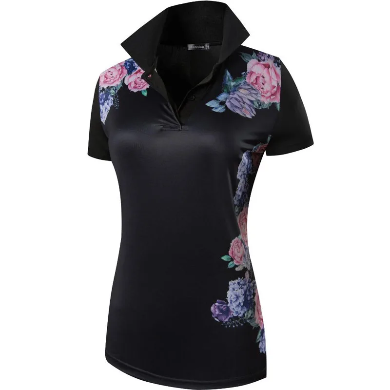 Модная женская Повседневная футболка jeansian с коротким рукавом, футболка-поло с принтом, футболка-поло для гольфа, тенниса, бадминтона, черная SWT317
