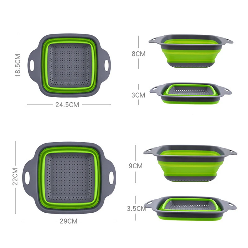 Продукт: складной силиконовый дуршлагЦвет: красный, зеленый, оранжевый, синийМатериал: пищевой силикон + ППКоличество: 1 шт.Размер:Большой: 29*22*9 смМаленький размер: 24,5*18,5*8 см