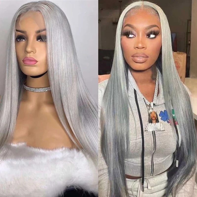 Серебристо-серый шелковый прямой парик на сетке спереди термостойкий парик для косплея длинный прямой синтетический парик для черных женщин