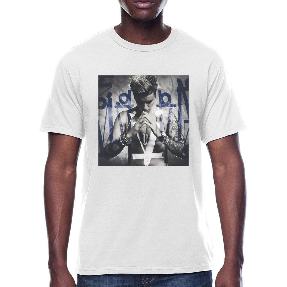 Футболка мужская с принтом постера Джастина Бибера, рубашка с круглым вырезом, с коротким рукавом, 100% хлопок, Повседневная Уличная одежда, лето