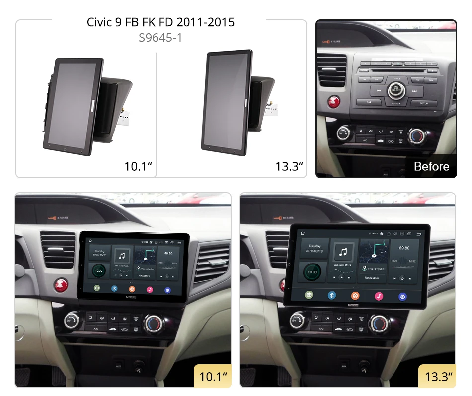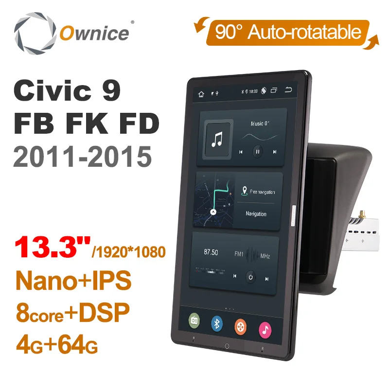 13,3 дюймов 1920*1080 Ownice 1 Din Android 10,0 Автомагнитола для Honda Civic 9 FB FK FD 2011 - 2015 GPS Авто Аудио авто поворотный