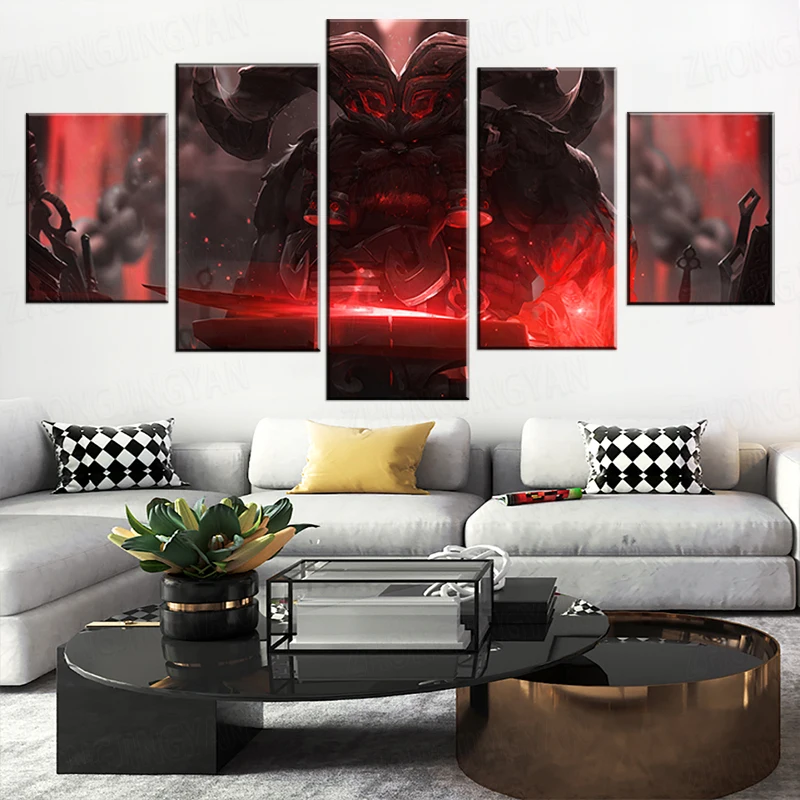 5 панелей, Постер Лига Легенд, HD-игры, настенная роспись на холсте для домашнего декора стен