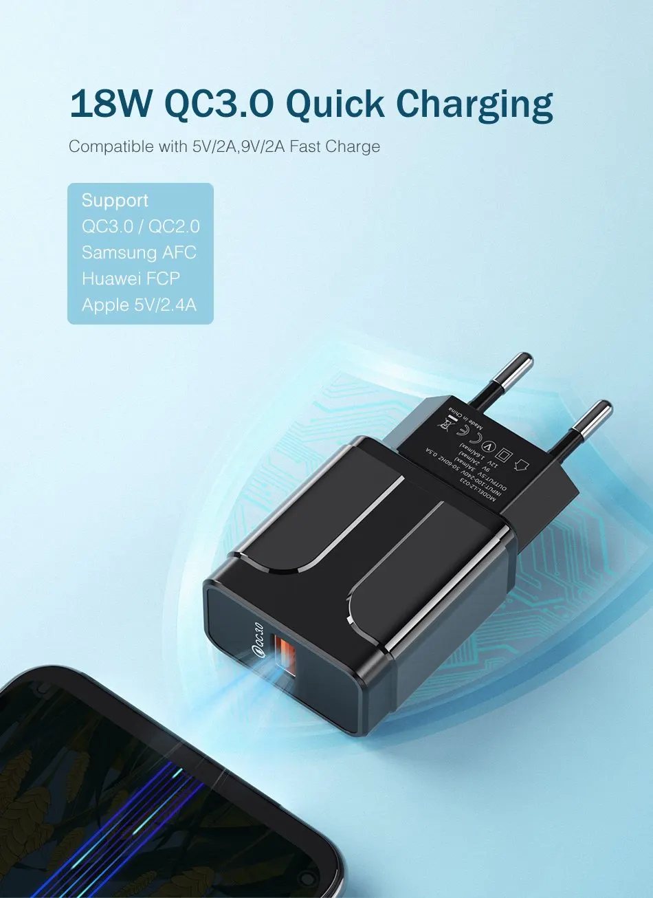 Портативное Сетевое зарядное устройство с USB-разъемом, 18 Вт