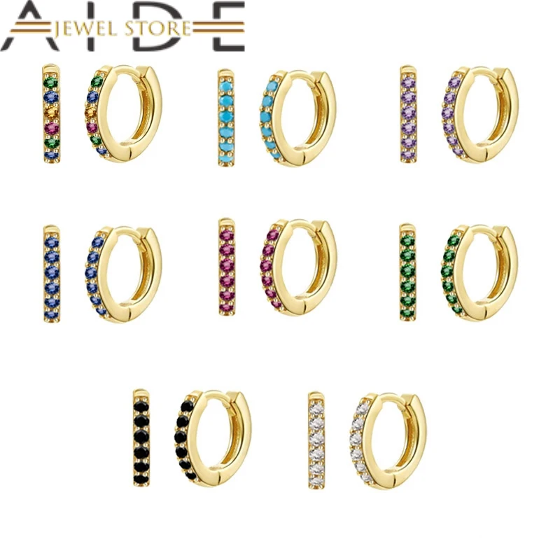 Aide 7 мм радужные серьги-кольца с цирконом для женщин бирюзовые/Лавандовые/черные/зеленые/белые/синие круглые серьги