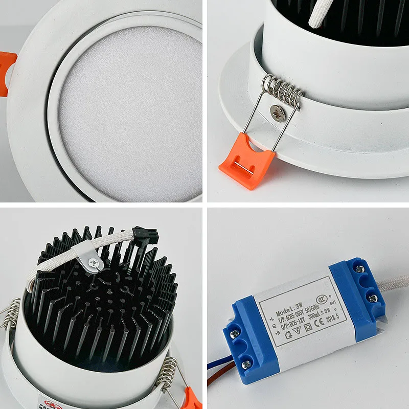 Встраиваемый светодиодный светильник с регулируемой яркостью s AC85-265V, 3 Вт, 5 Вт, 7 Вт, 9 Вт, 12 Вт, 15 Вт, светодиодный светильник, потолочный Точечный светильник для спальни, внутреннего освещения