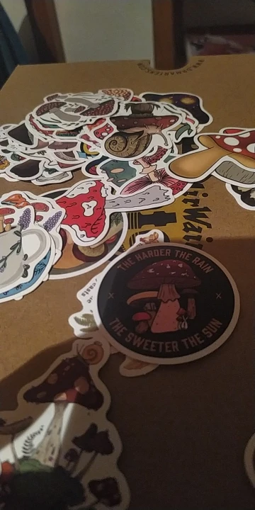 Эти наклейки красивые. Дизайн приличный. Они матовые, но красочные. Они среднего размера.