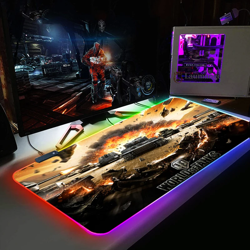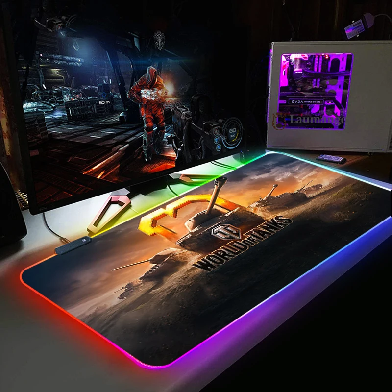 Игровой коврик для мыши world of tank RGB с подсветкой, резиновый натуральный игровой базовый Коврик со светодиодной подсветкой для клавиатуры и мыши для девочек
