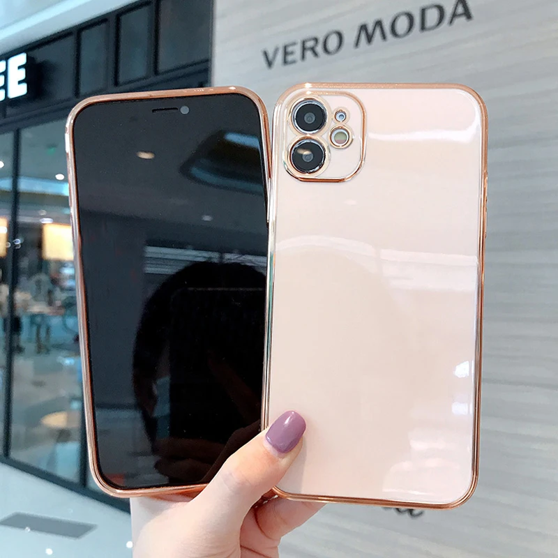 Чехол с позолотой для iPhone 12 Pro Max, 8 Plus, 7, XR, XS, X, 11 Pro Max, SE 2020, силиконовый, однотонный