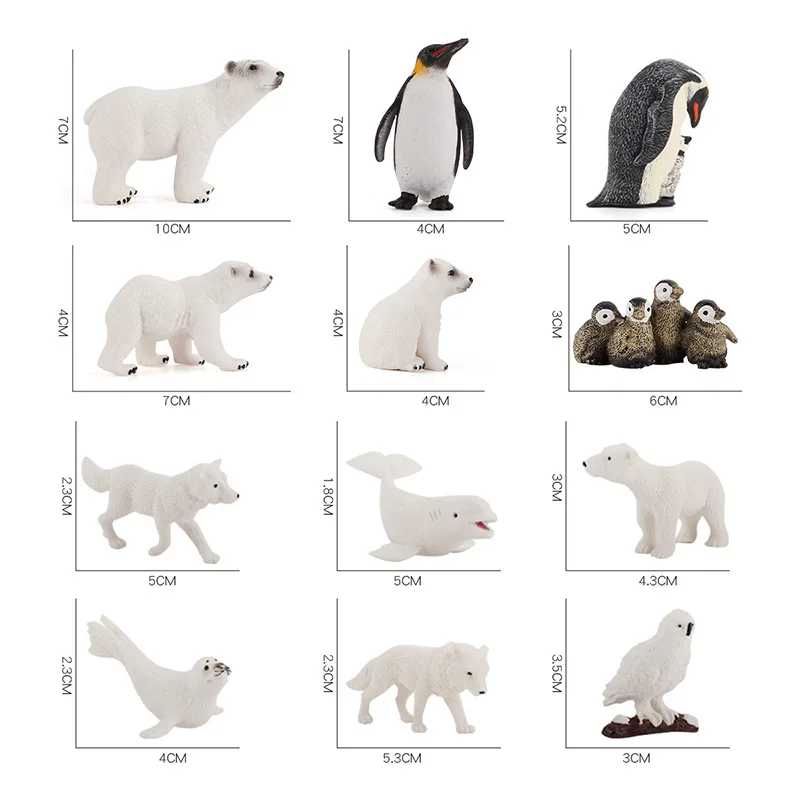 РазмерыMini Simulation Arctic Wild Animal Wolf Bear Fox Rabbit Model Figures