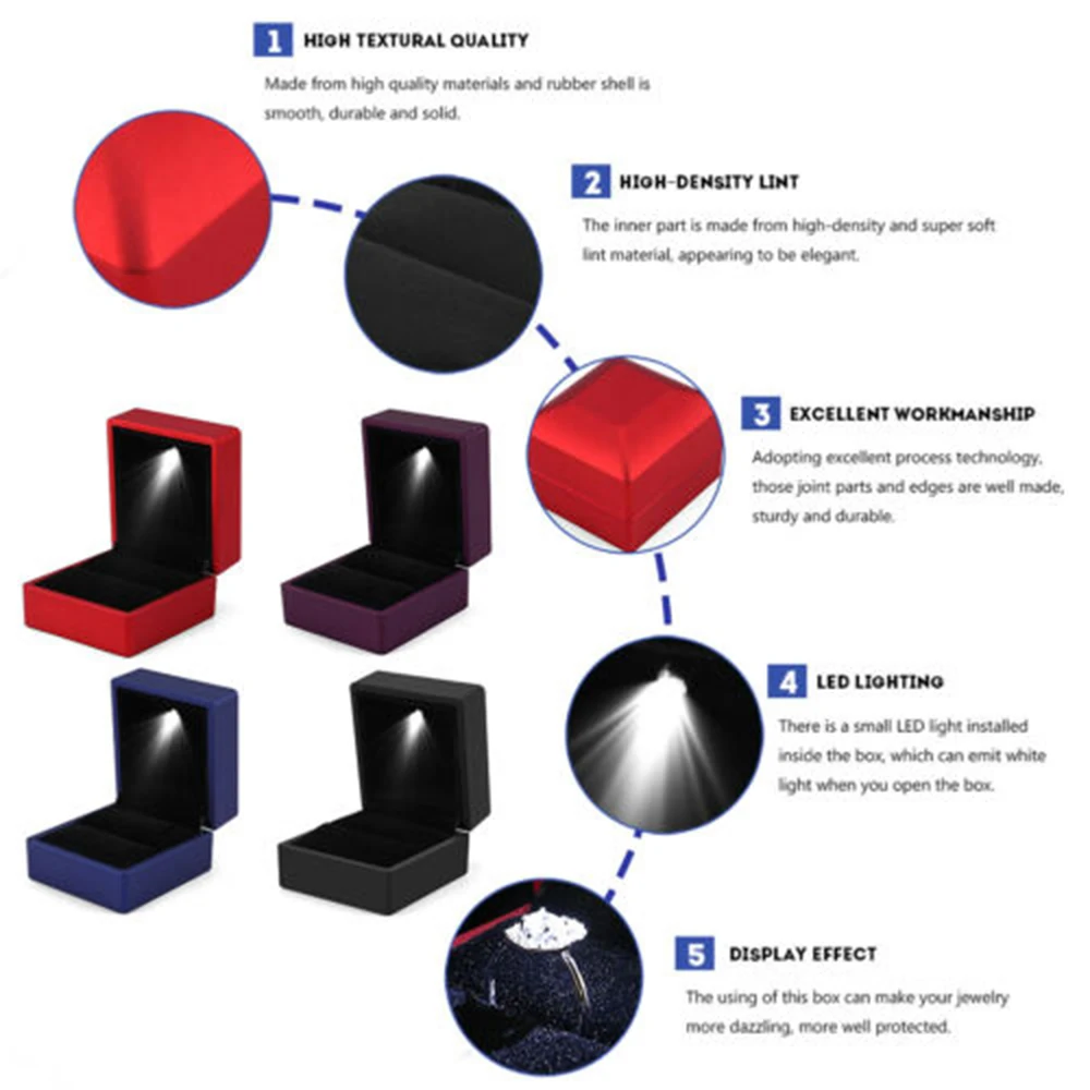 Элитная кожаная шкатулка для украшений с LED светильник обручальные кольца с сердцем Чехол коробки, в красном цвете; Новые комплекты 2021 Ювелирные изделия Органайзер упаковка