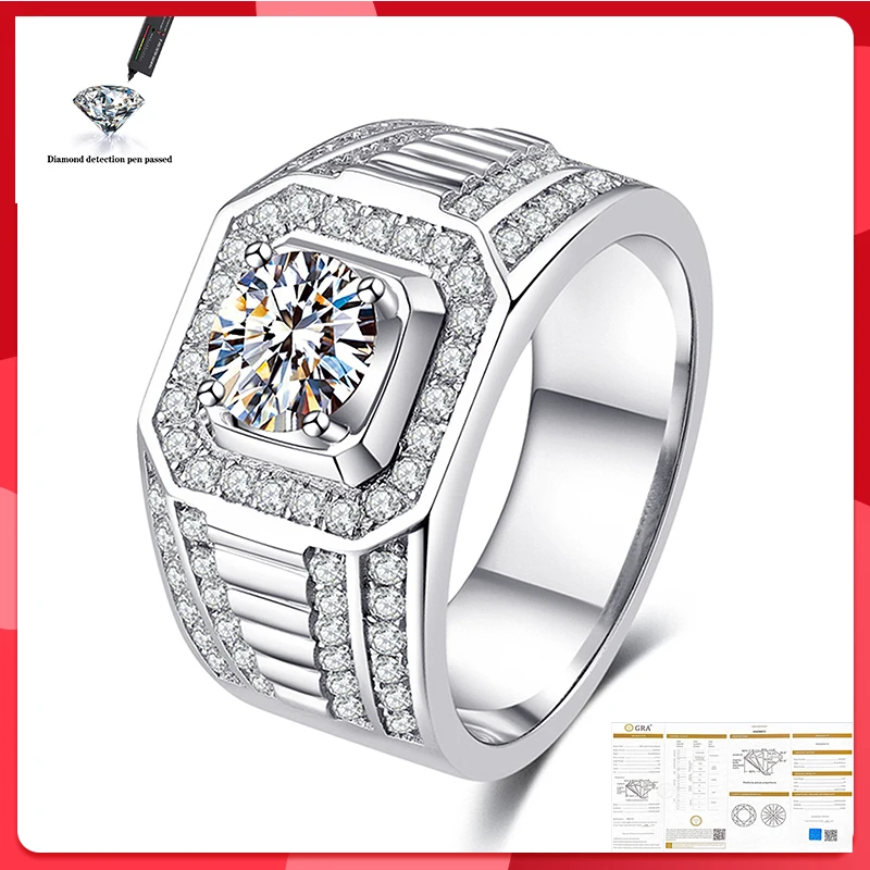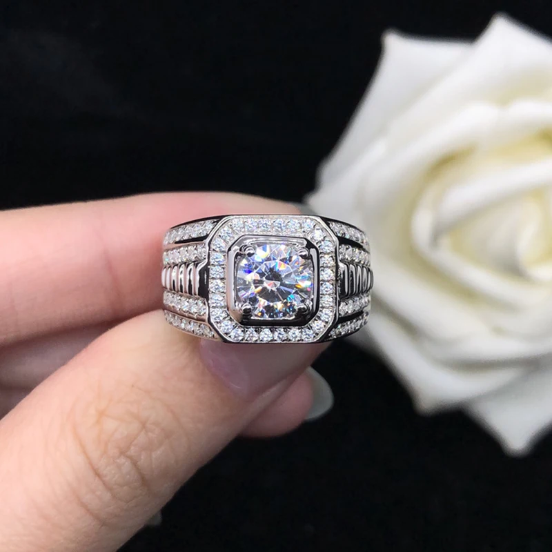 Кольца 1ct 2ct 3ct D мужские с мусанитом, полное S925 Стерлинговое ...