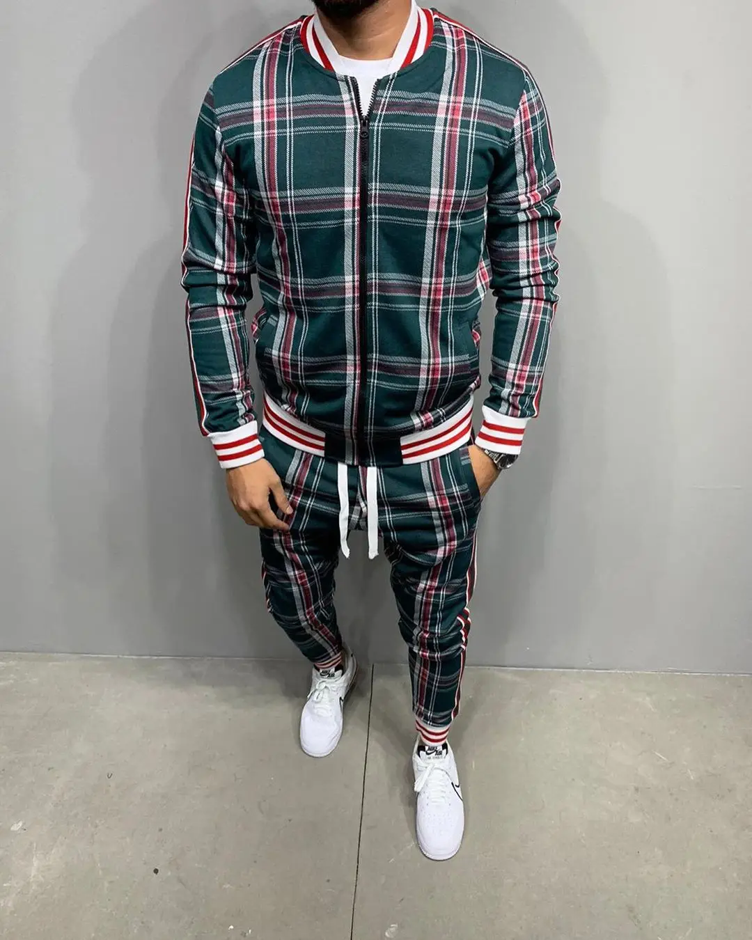 Мужской спортивный костюм, куртка на молнии с длинным рукавом и штаны, повседневный спортивный костюм