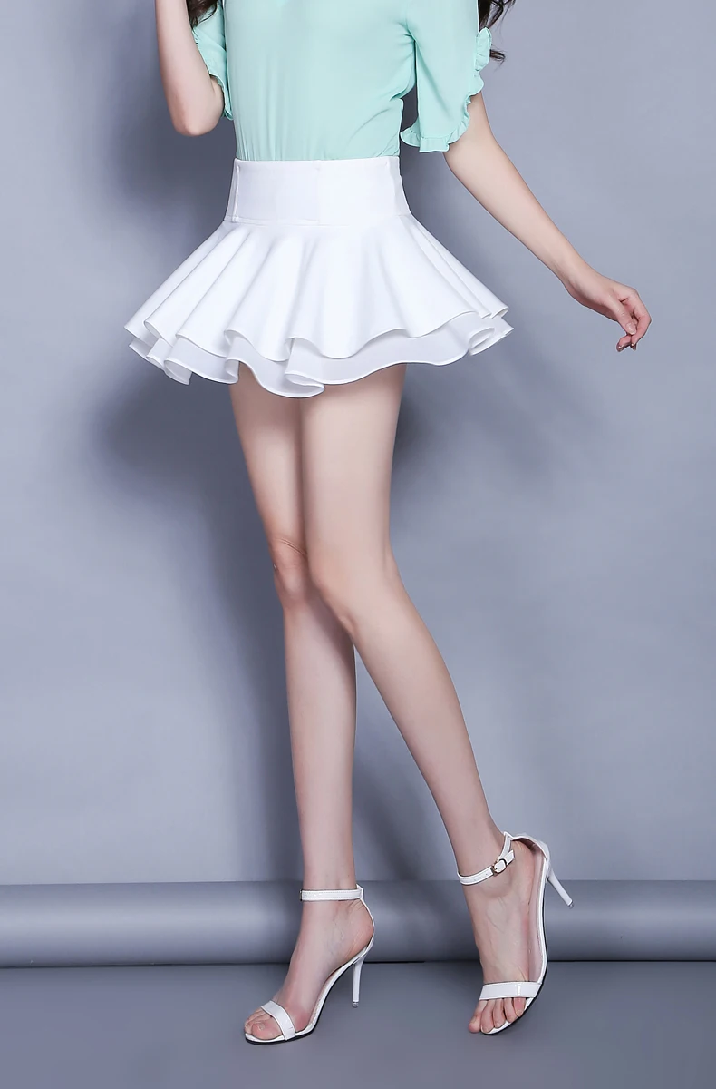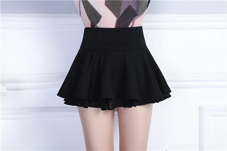 Женская шифоновая Мини-юбка с высокой талией, летняя милая и милая черно-белая плиссированная юбка, Студенческая пушистая юбка