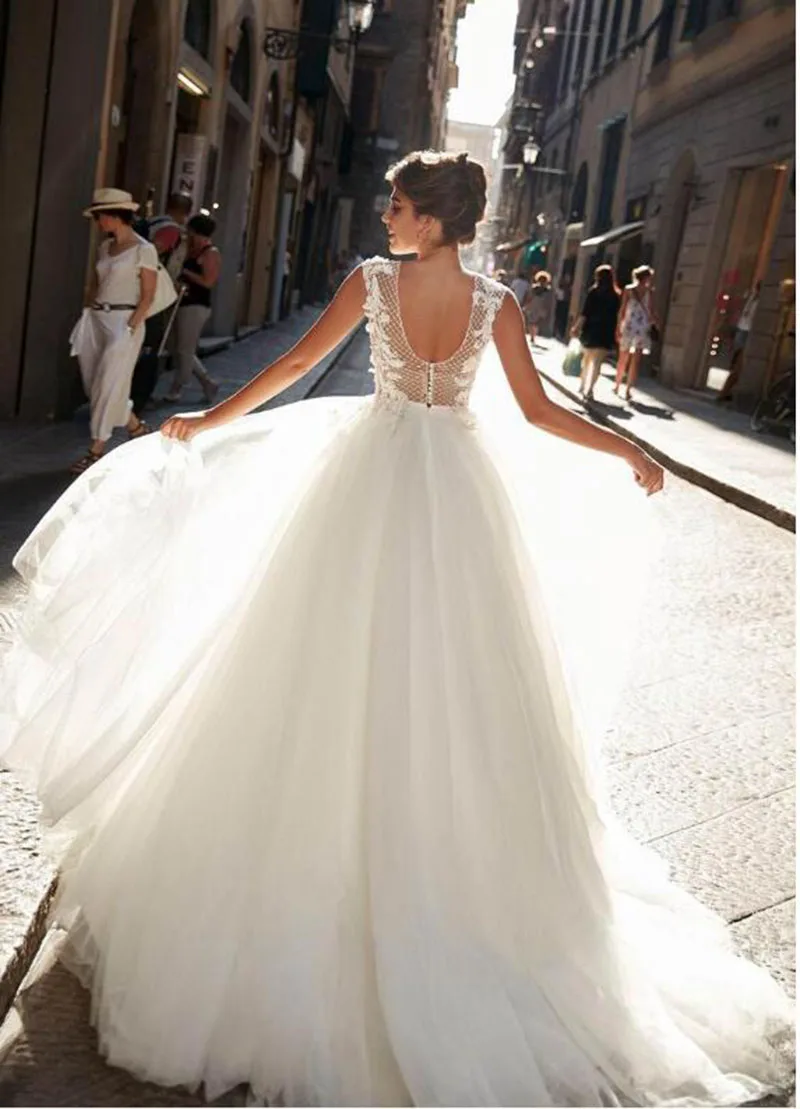 Платье LORIE свадебное с V-образным вырезом, Пляжное фатиновое с от...