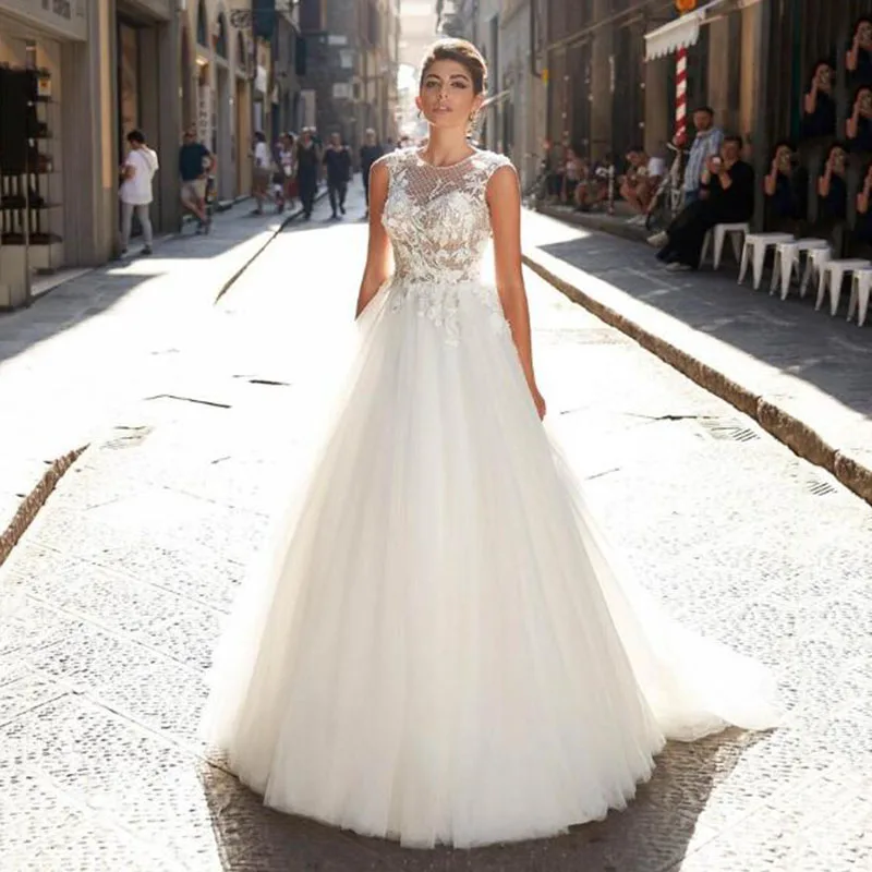 Свадебное платье принцессы LORIE, кружевное платье-трапеция с аппли...