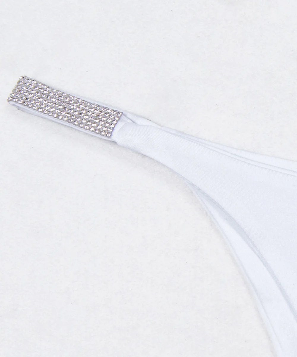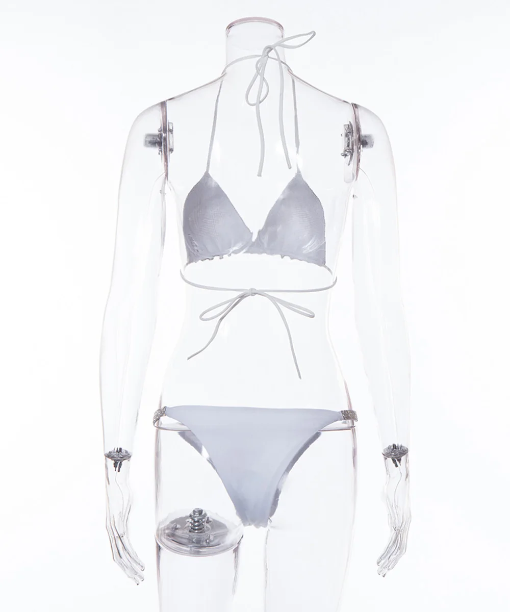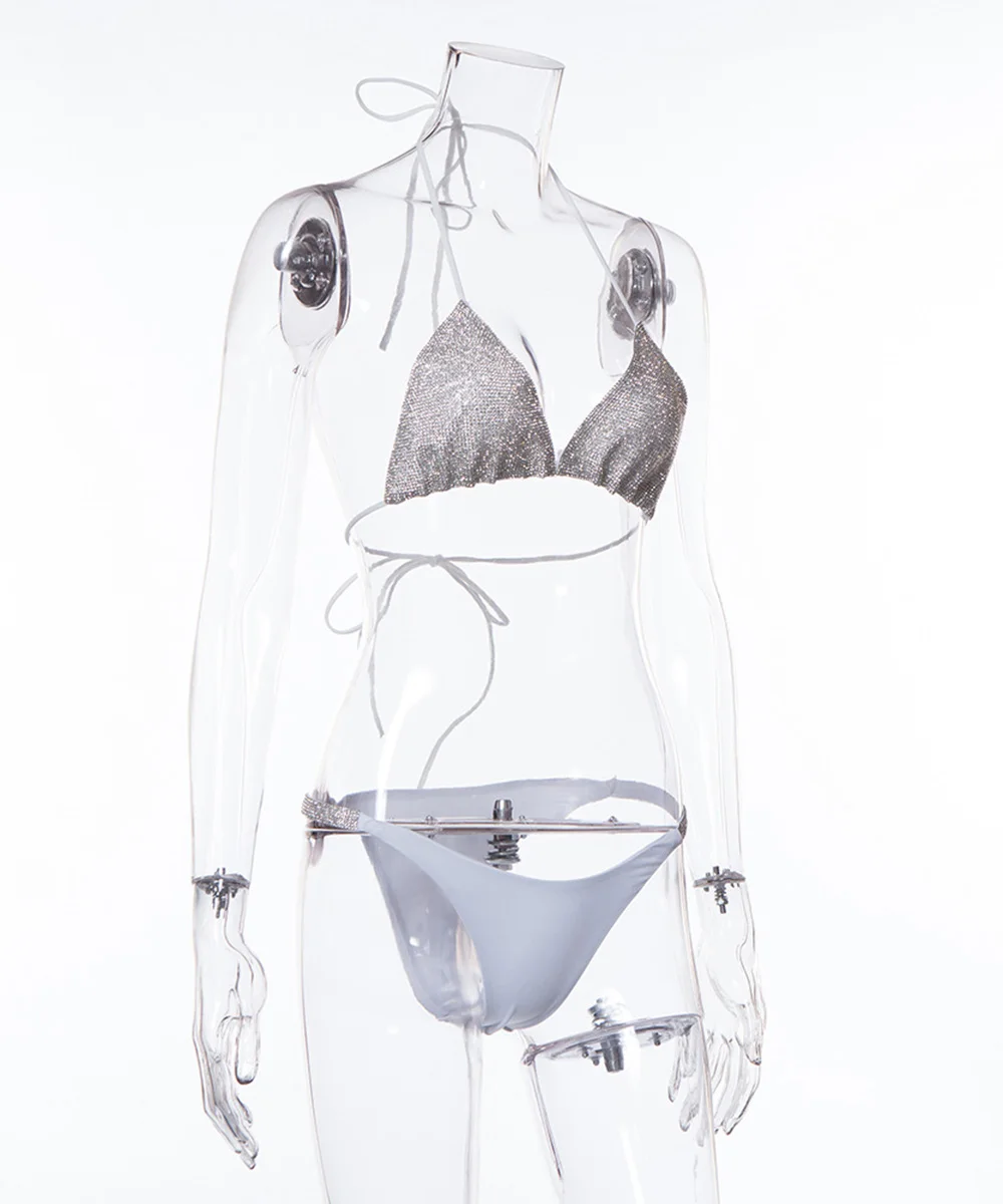 Роскошные блестящие стразы бикини серебряный комплект 2021 Кристалл бриллиант сексуальный женский купальник через шею пуш-ап бандажный Купальник бикини комплект