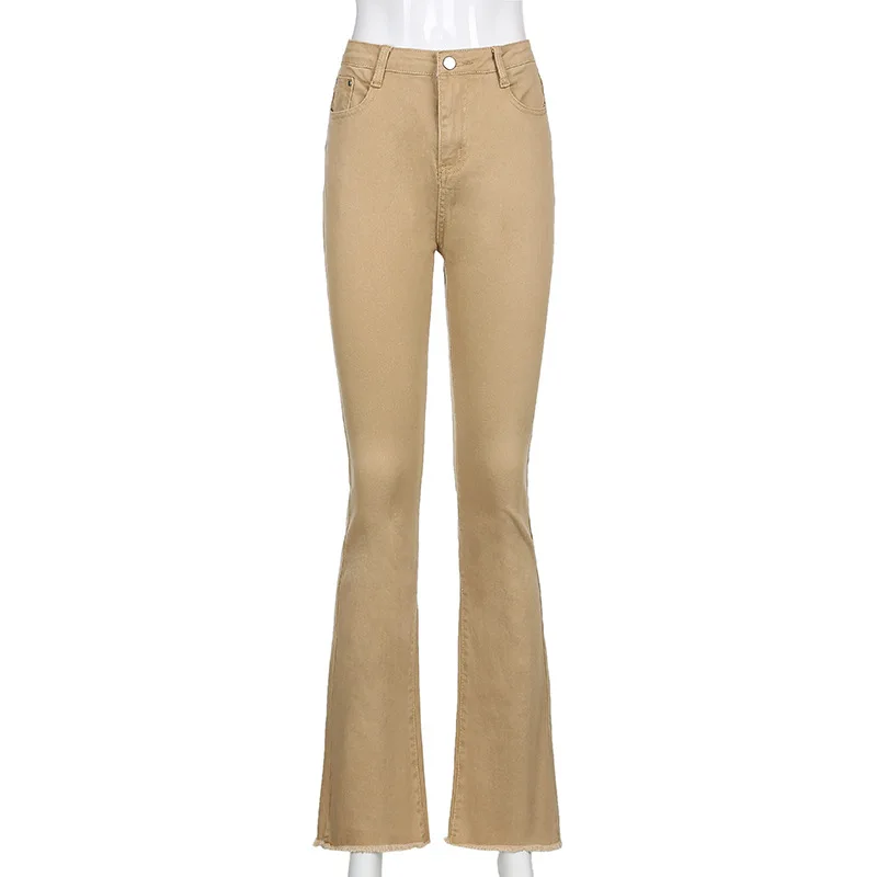 Женские джинсы с высокой талией, расклешенные джинсы цвета хаки, че...