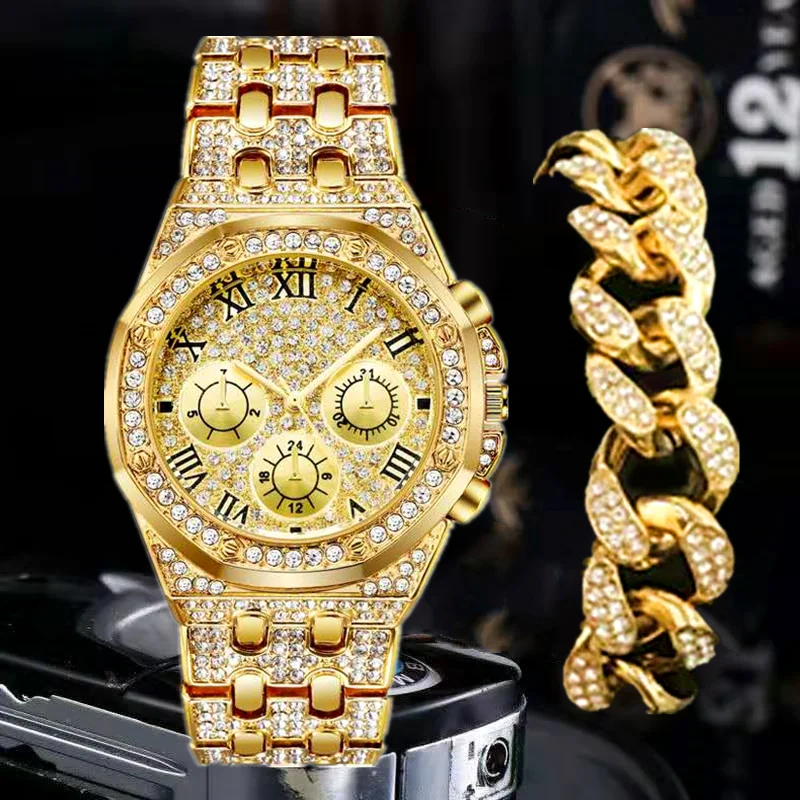 Ювелирные изделия из золота набор для Для мужчин со льдом часы огра...