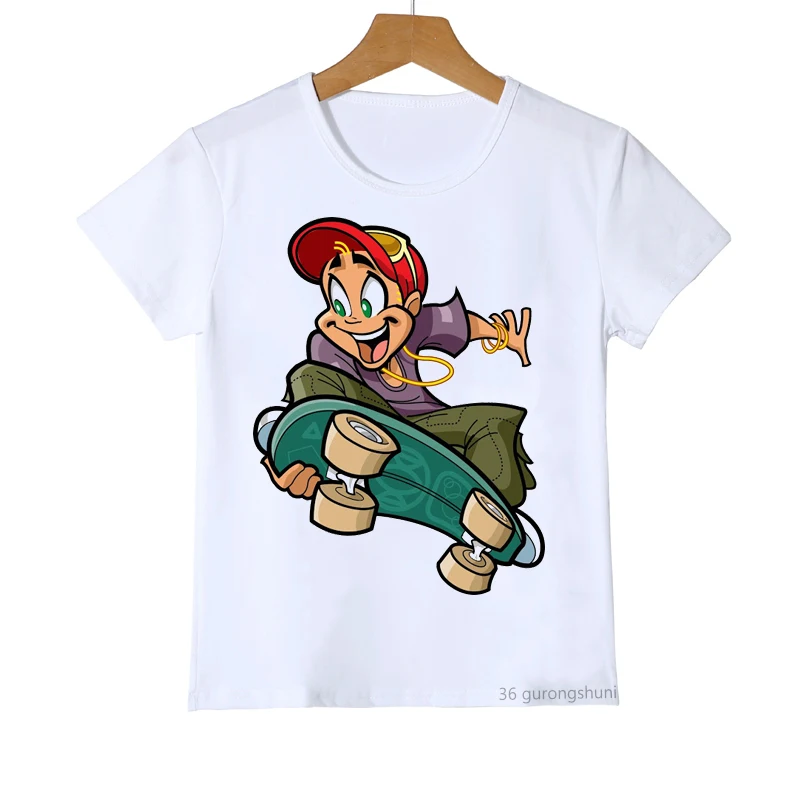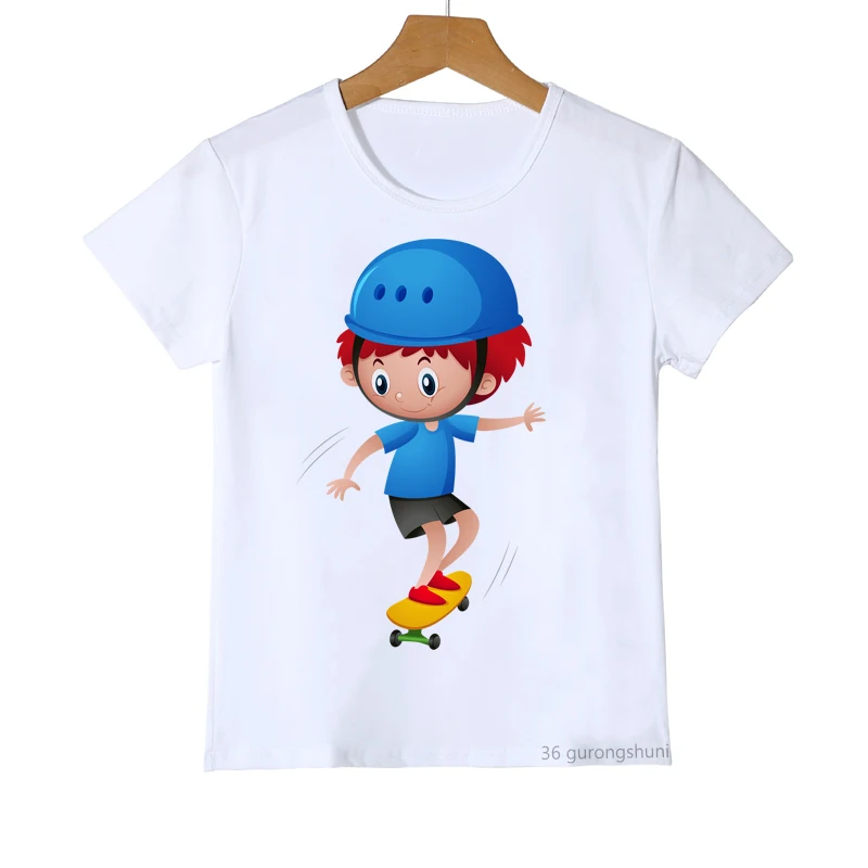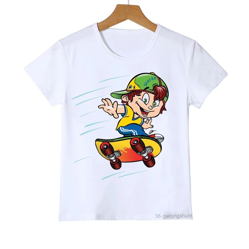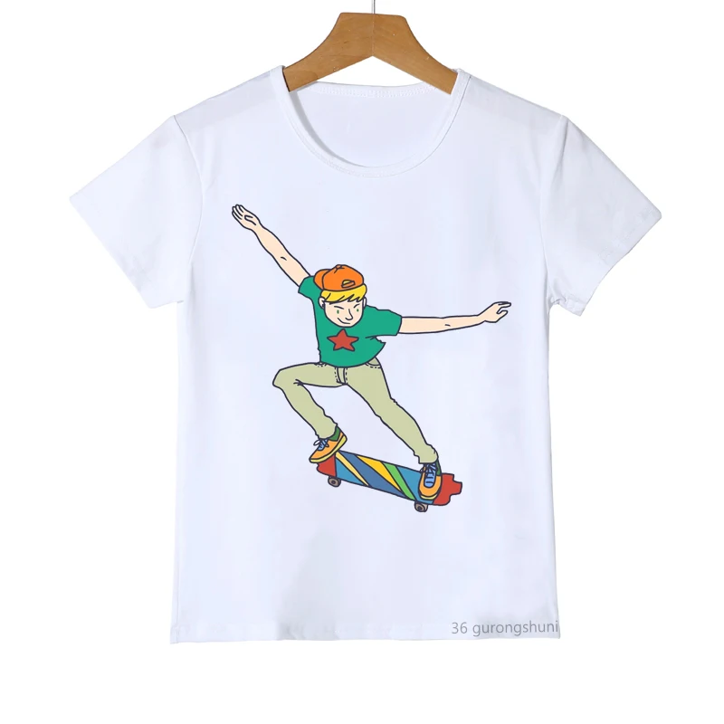 Забавная футболка для мальчиков, Детская футболка с принтом для скейтбординга, летняя Модная белая футболка с коротким рукавом, топы для мальчиков, оптовая продажа