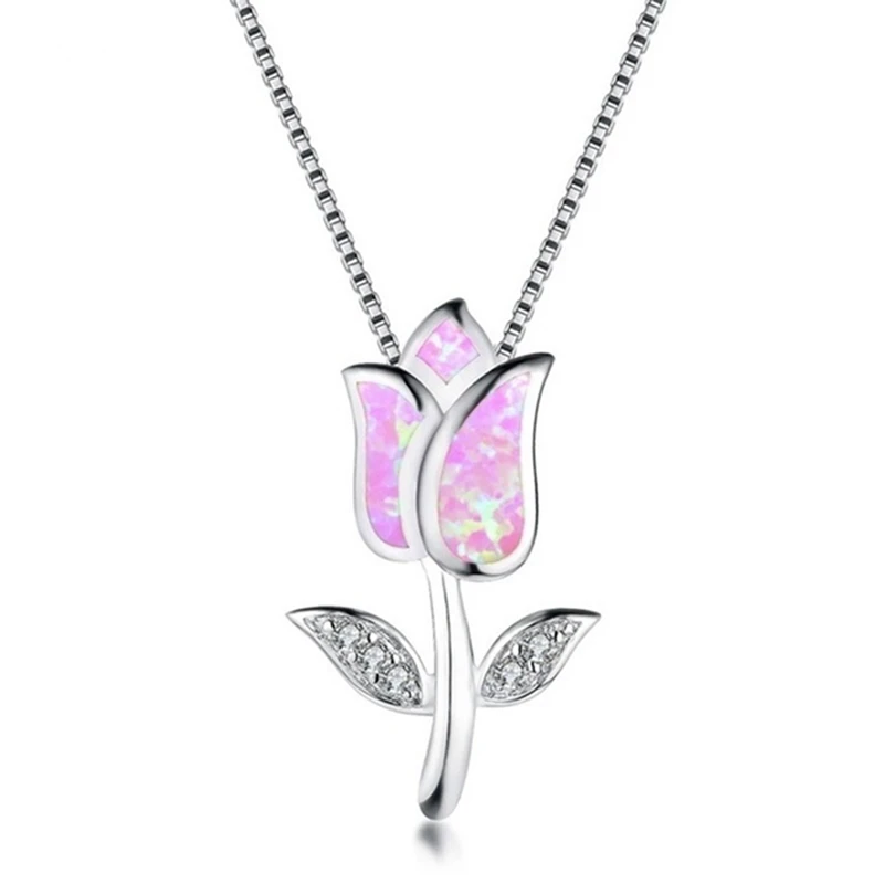 Модное женское ожерелье с подвеской в виде розы Романтический Радуга камень ожерелье для женщин подарок на день рождения аксессуары ювелирные изделия