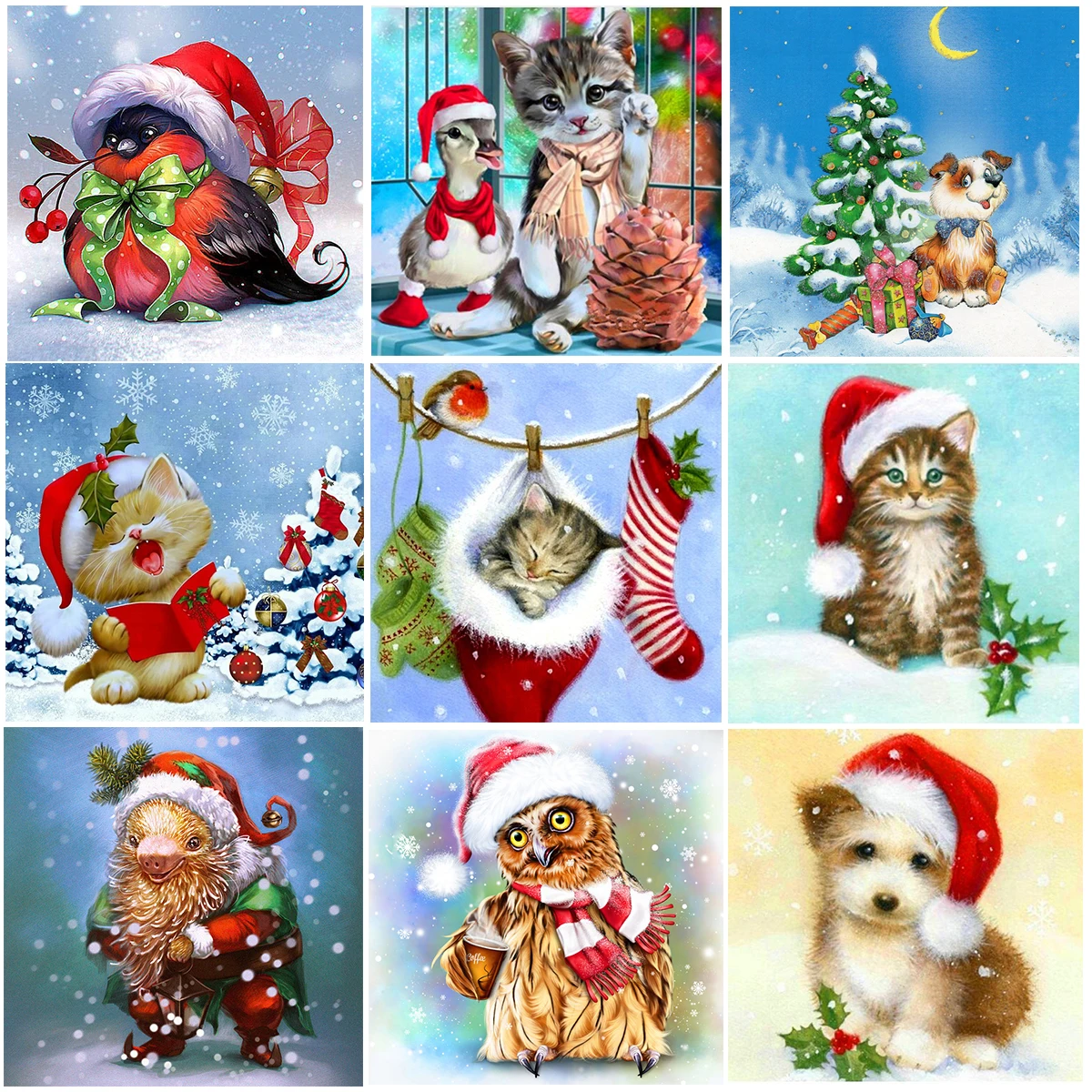 5D бриллиантовый рисунок Рождество мультфильм Кот Собака полная Алмазная вышивка полная Алмазная мозаика Рождественская фотография