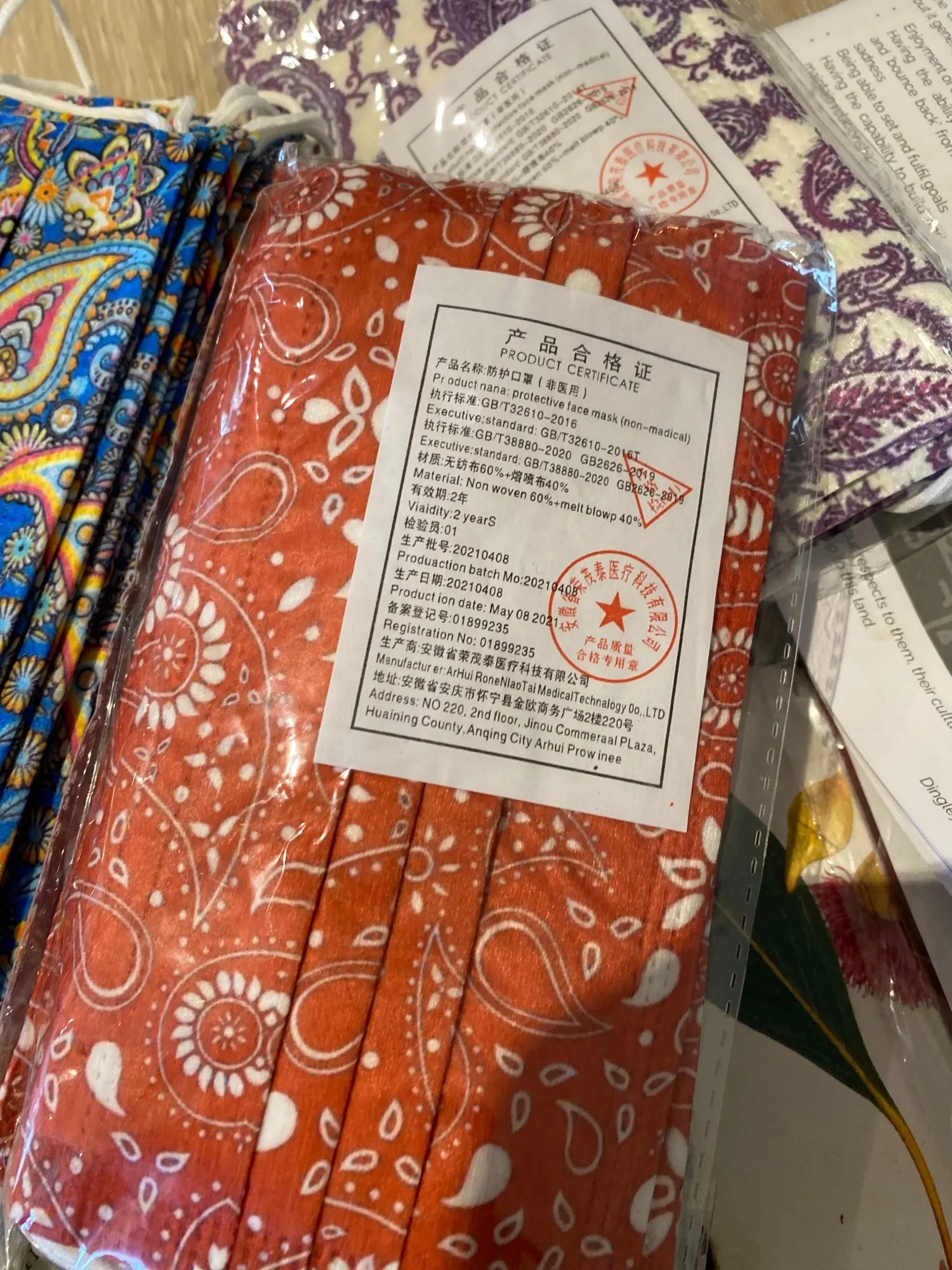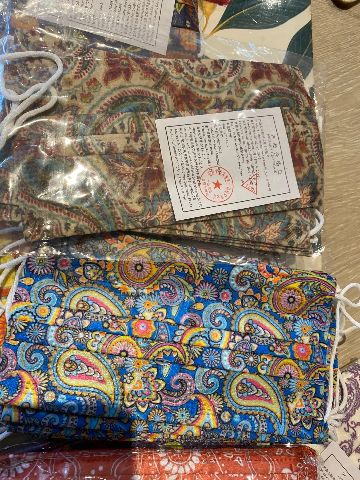Очень красивые маски. Узор точно такой же, как на фото. Очень мягкий материал, удобно носить. Не пахнет