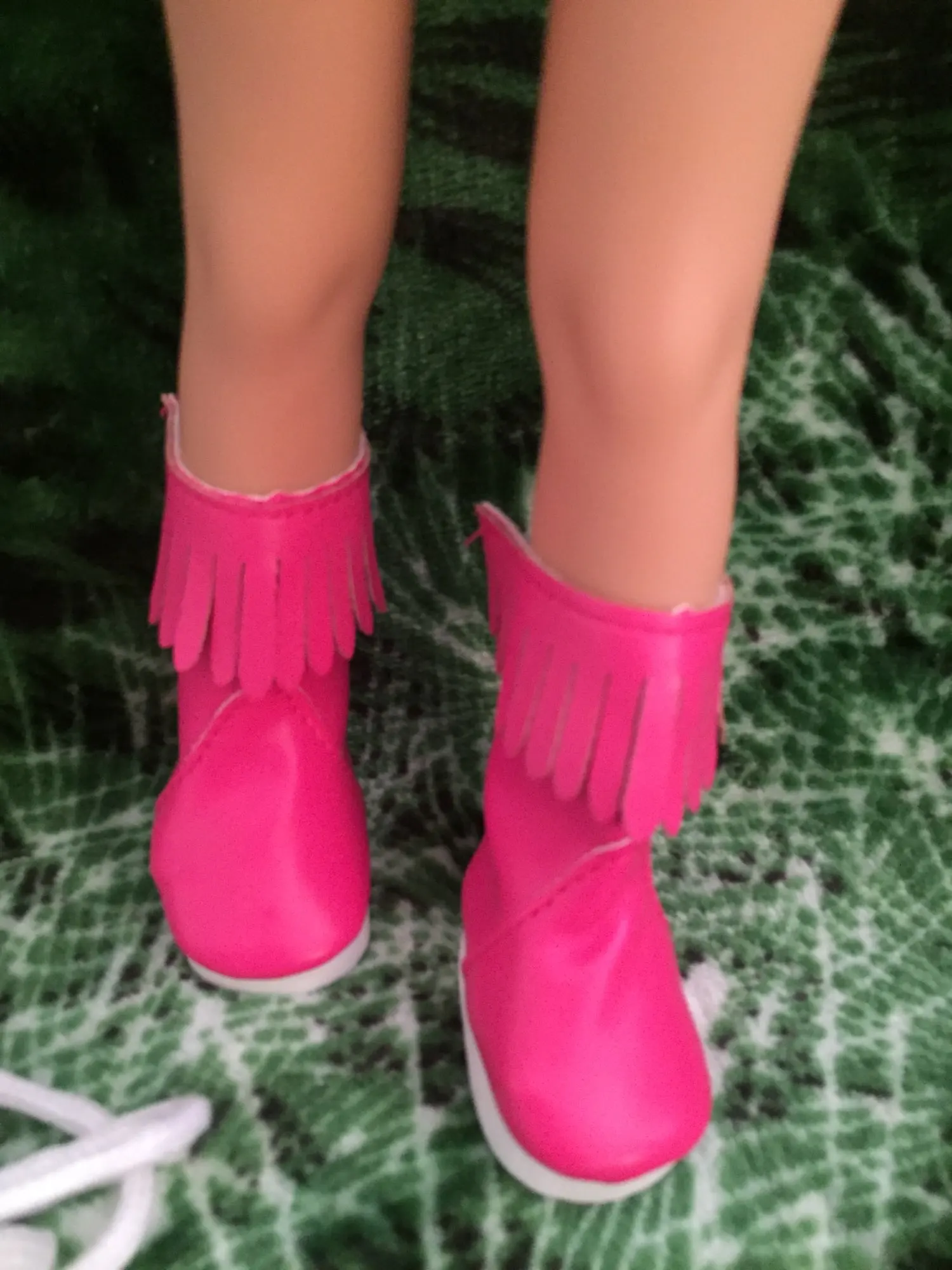 Розовые милые сапожки. Со шнуровкой сзади, чтобы проще было обуть куколку. Заказывала для Паола Рейна. Единственное внешне подошва чуть меньше. Носки пока не приехали мерила на голую ногу кукле, но запас небольшой есть, так что думаю на носки или колготки будут хорошо. Ещё очень порадовало, что понятно где лево/право, на какую ногу сапог. Шнурки как настоящие, но длинноваты. В целом очень довольна покупкой!!! за такую цену достаточно качественно сделано, не пахнут, куколка в них даже стоит нормально без поддержки! Приехали очень быстро и заказывала последними, а приехала посылка раньше всех. Недели за две наверное доставка, 7-10 апреля заказала и вот сегодня уже получила до МО.