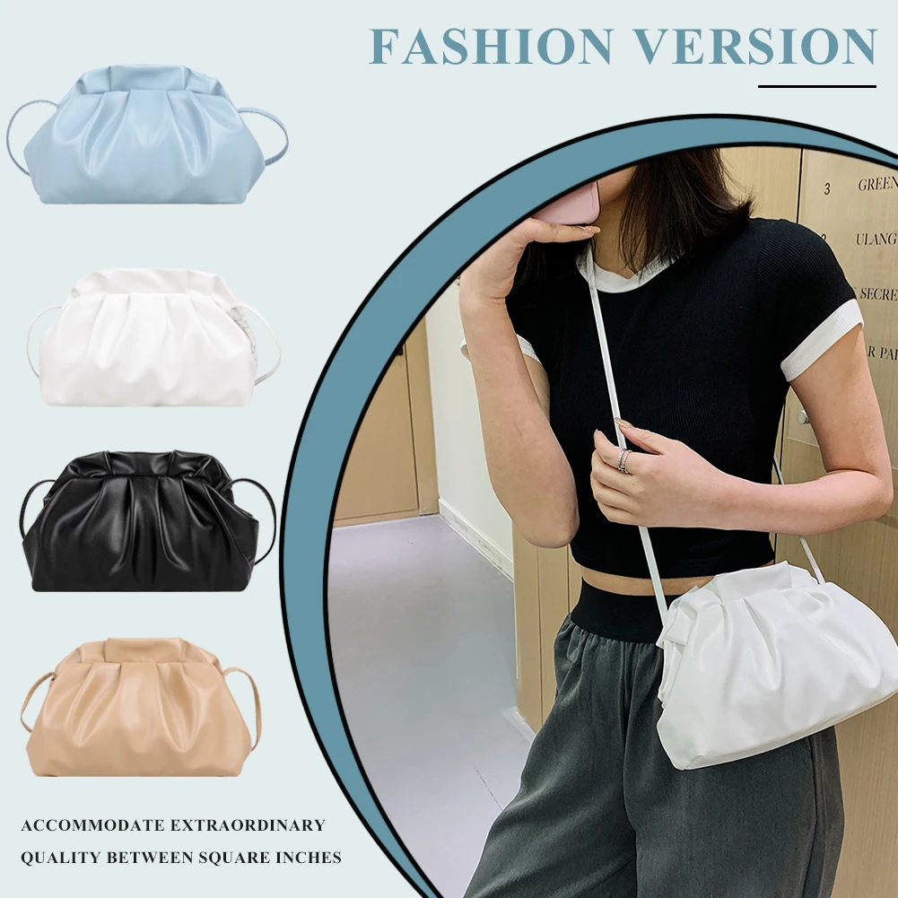 Женская сумка через плечо, из мягкой искусственной кожи, однотонная, со складками