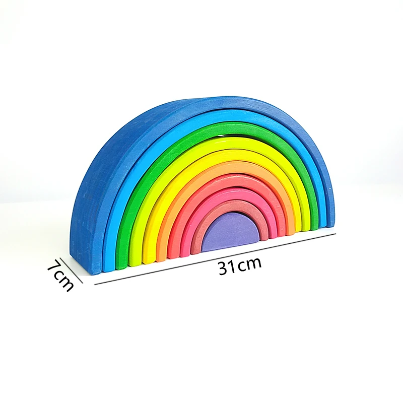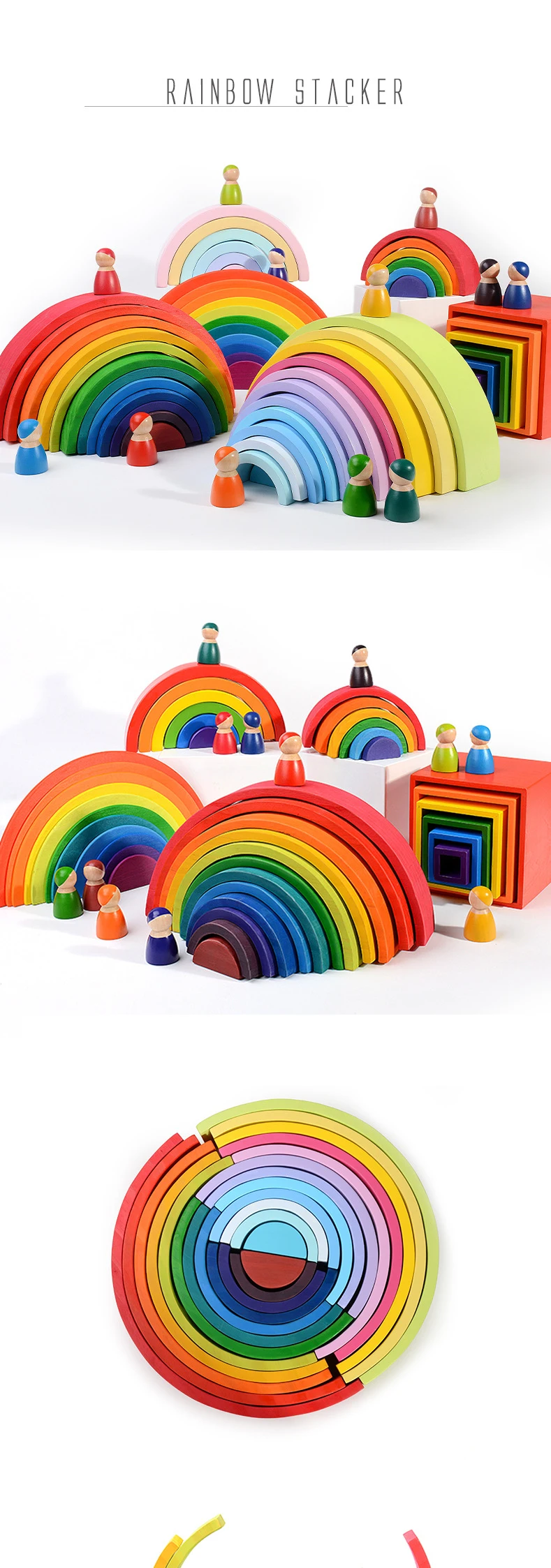 3D деревянные игрушки сделай сам, большой размер, радужные строительные блоки, Радужный штабелер, креативные развивающие игрушки Монтессори для детей