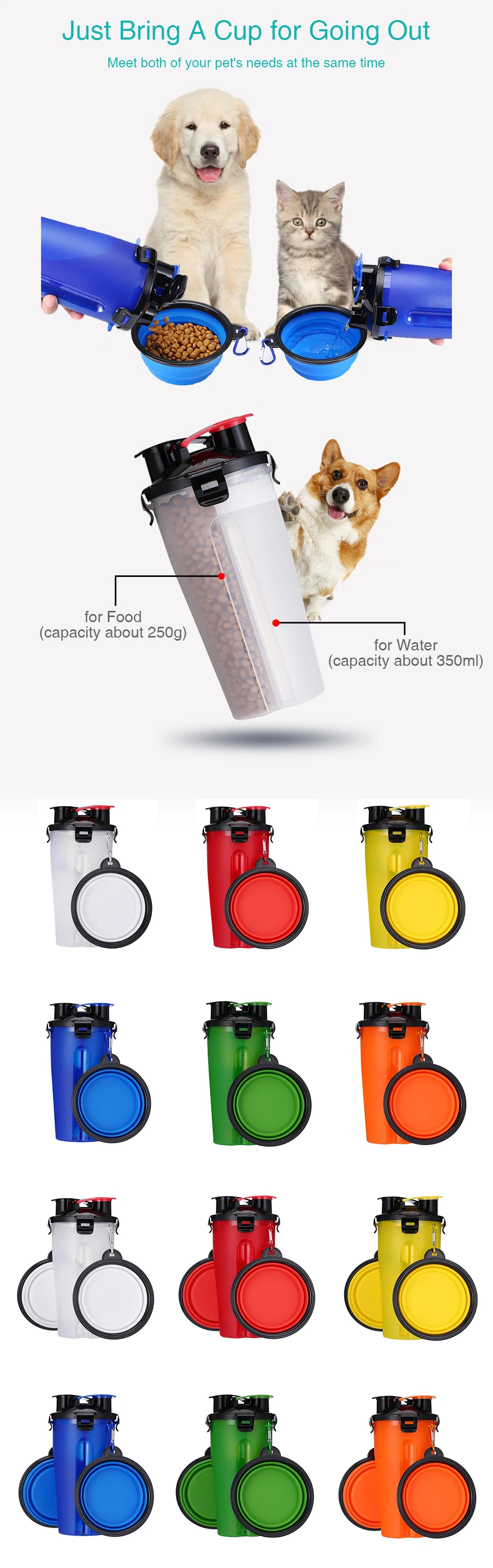 2 в 1, портативный контейнер для воды и еды для домашних животных с...