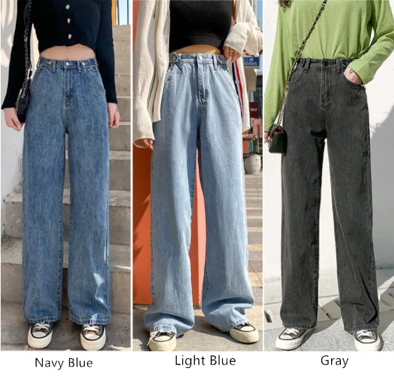 Джинсы женские прямые с высокой талией, широкие, свободные и тонкие