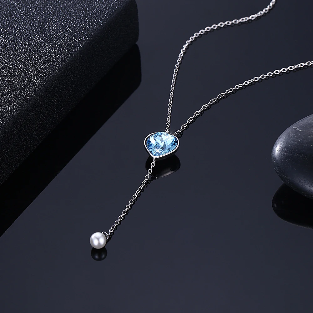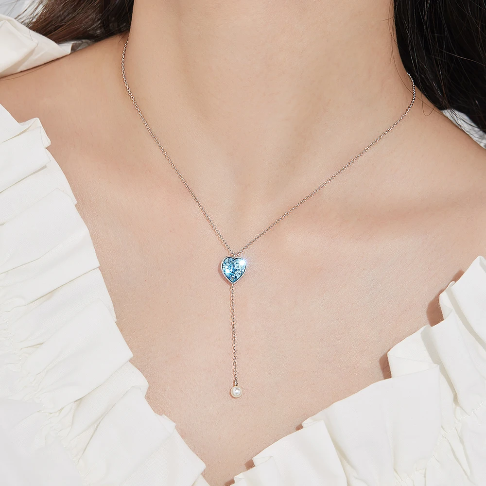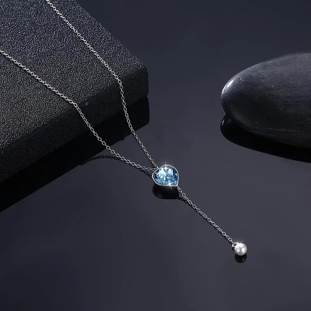 SILVERHOO S925 Стерлинговое серебро подвеска в форме сердца для женщин Сияющие синие кристаллы Австрия ювелирные изделия горячая распродажа