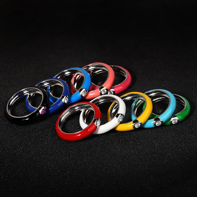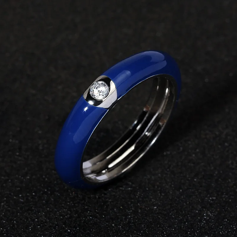 Синее, белое, розовое, простое стильное эмалированное кольцо с куби...