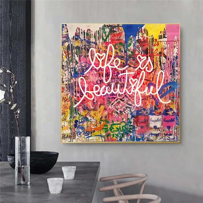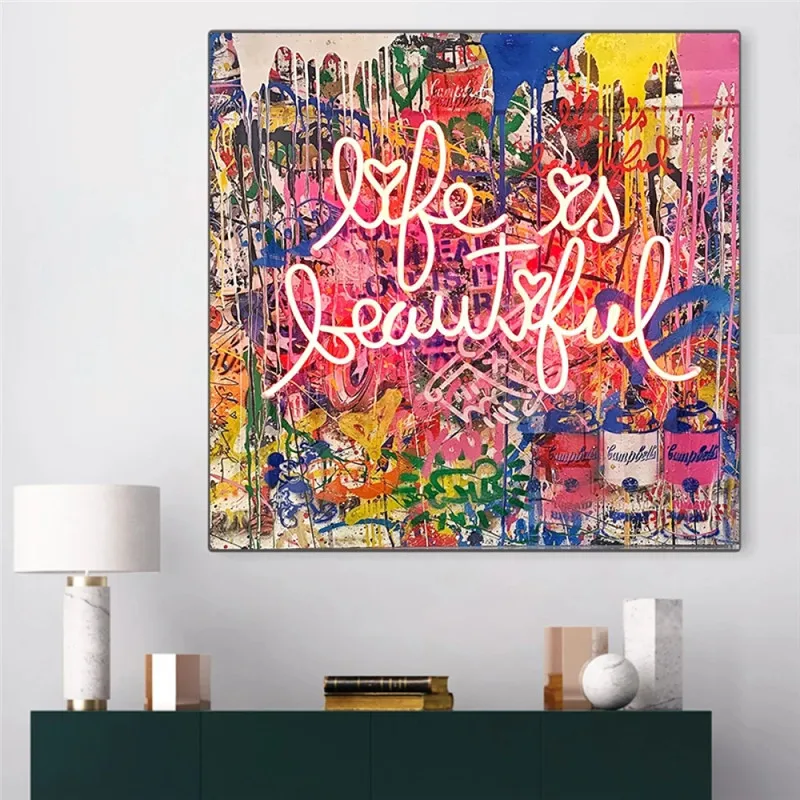 Граффити жизнь красивый постер уличное искусство картина на стену Холст Плакаты и принты для декора гостиной