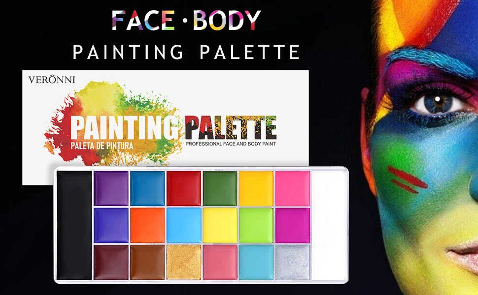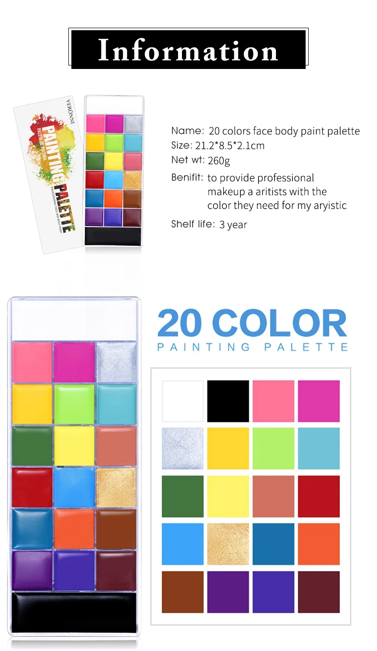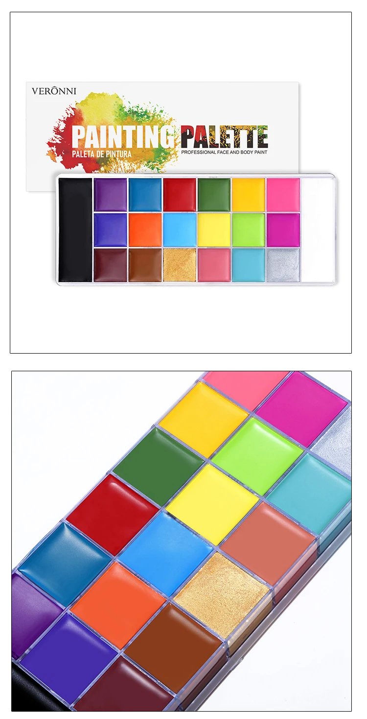 VERONNI 20 цветов для рисования лица и тела, Детская безопасная масло для тату для рисования, художественная Макияж для вечеринки по случаю Хэллоуина, маскарадное платье, палитра для красоты