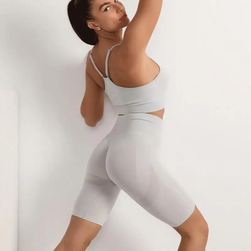 Комплект спортивный женский бесшовный из бюстгальтера и шортов, 2 шт.