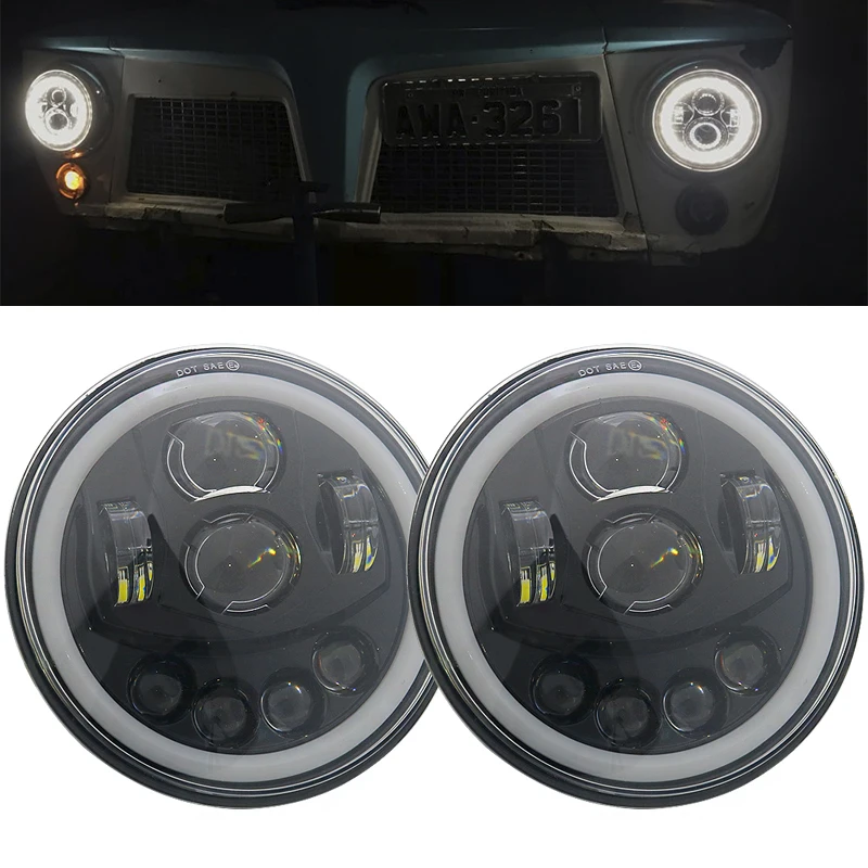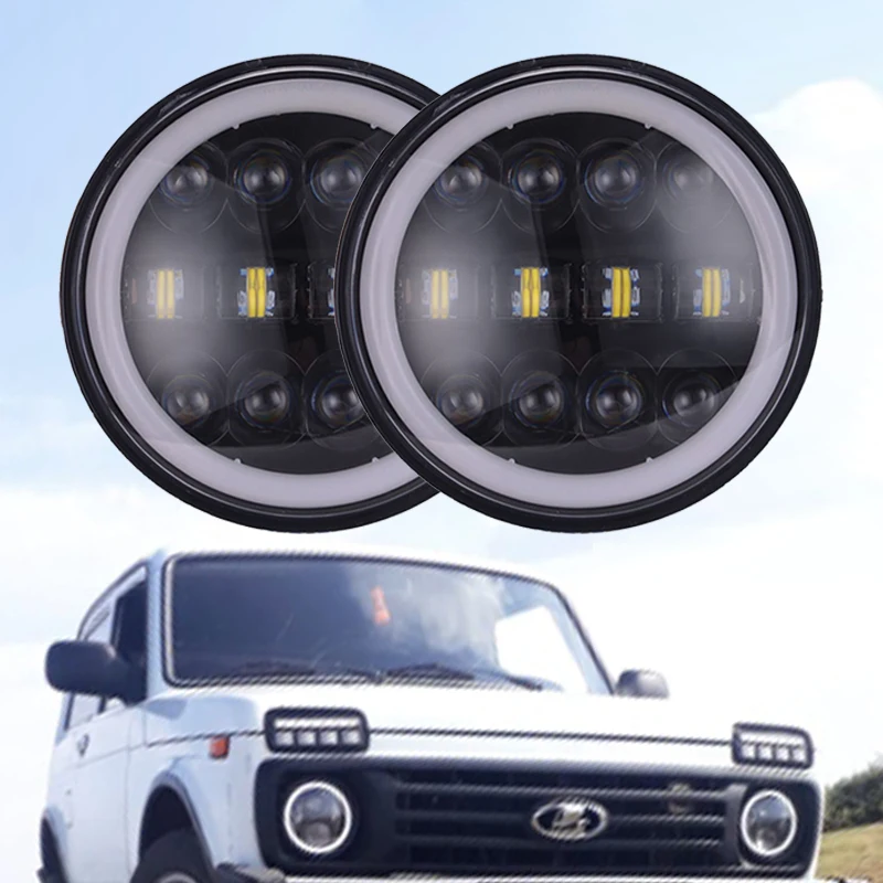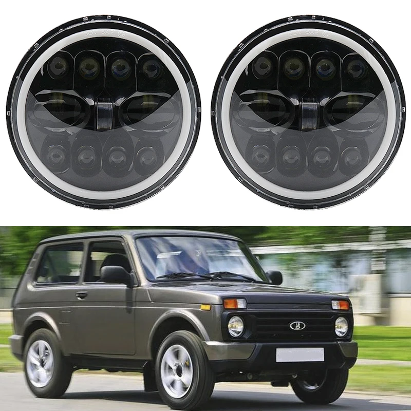 2xFor Lada Niva 7 дюймовый светодиодный головной светильник Hi/ближнего и дальнего света светильник Halo Угол Eyes DRL светодиодные фары для Jeep Wrangler для внедорожников 4х4 suzuki Самурай