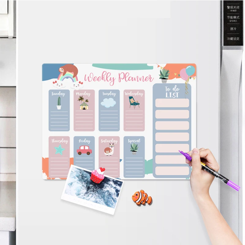 Магнитная доска для еженедельного планировщика, ежемесячный календарь, магнитные наклейки, стираемая фотография