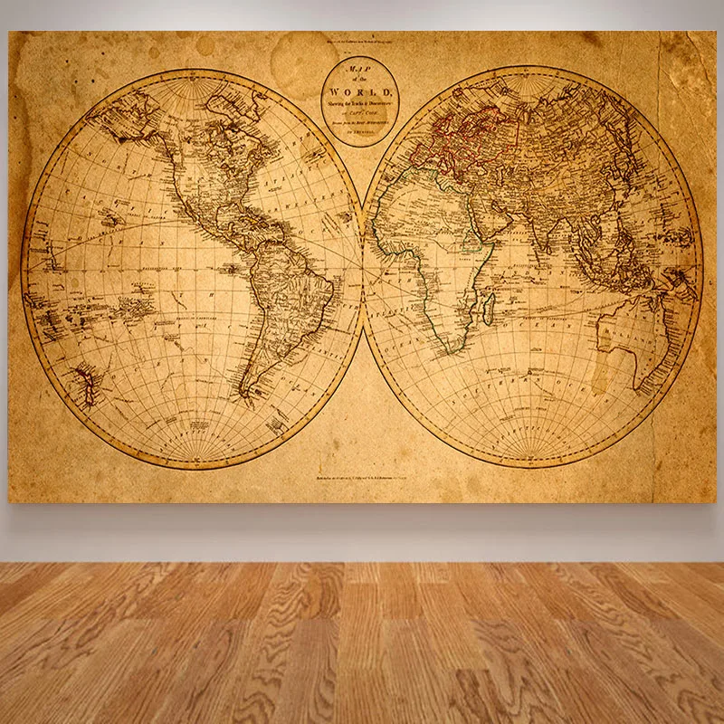 Винтажная картина с изображением старой карты мира, картины с круглыми углами для гостиной, настенные плакаты, картина для обучения, декора для офиса