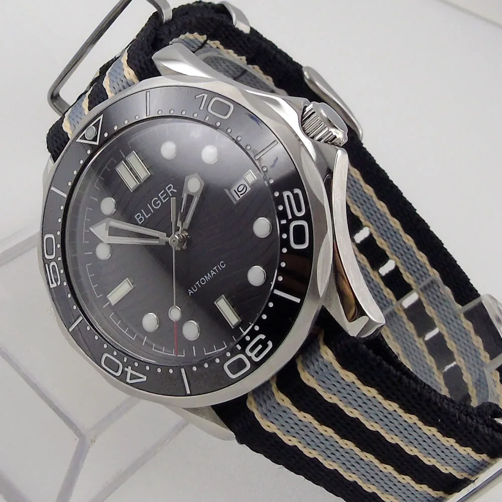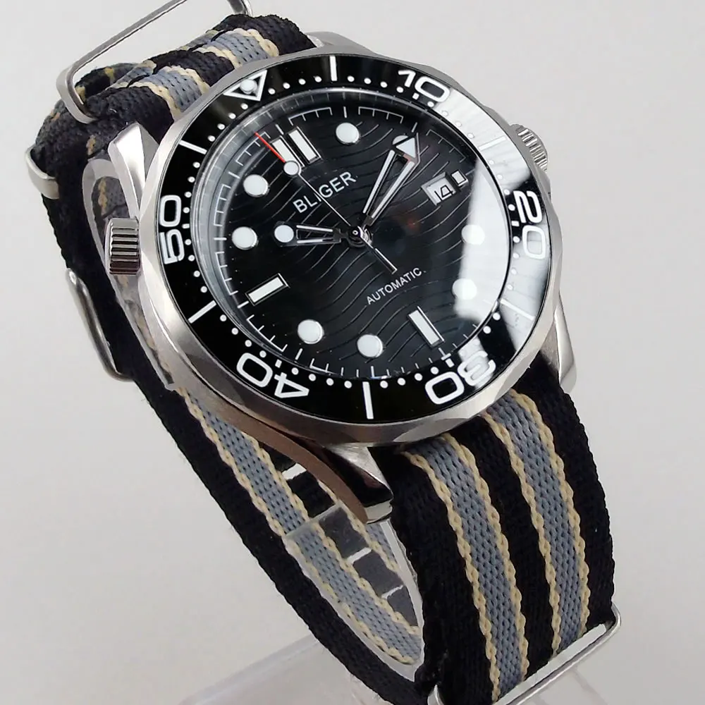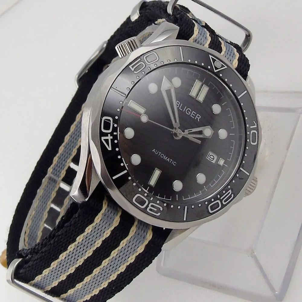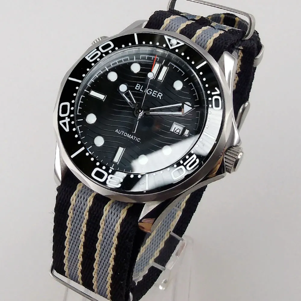Мужские автоматические часы Sapphire Miyota8215NH35A Move Men t, черные зеркальные нейлоновые НАТО ремешки, керамический Безель Bliger 41 мм