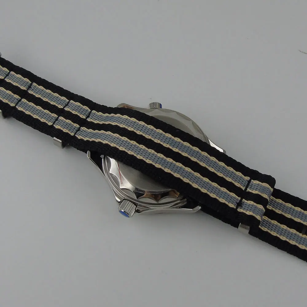 -- Механизм: NH35 / Mingzhu 2183 / Miyota 8215 механический автоматический механизм.-- Чехол Размер: 41 мм Диаметр без короны, 14 мм толщина-- Чехол Материал: нержавеющая сталь 316L нержавеющая сталь с керамический Безель-Чехол для защиты: 3 АТМ водонепроницаемый-Циферблат: черный цвет, дата в положении 3 часа-- Размер ремешка: ширина 20 мм-- Материал ремешка: нейлоновый ремешок-- Тип застежки: застежка-- Стекло: сапфировое стекло-Функция: Отображение даты, винт в короне, однонаправленный вращающийся ободок
