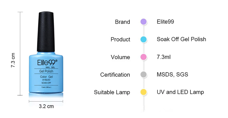 Elite99 лак Гель-лак для ногтей для дизайна ногтей советы 79 горячая Распродажа Цвет 7,3 мл Soak off органические УФ светодиодный Гель-лак для ногтей, Лаки