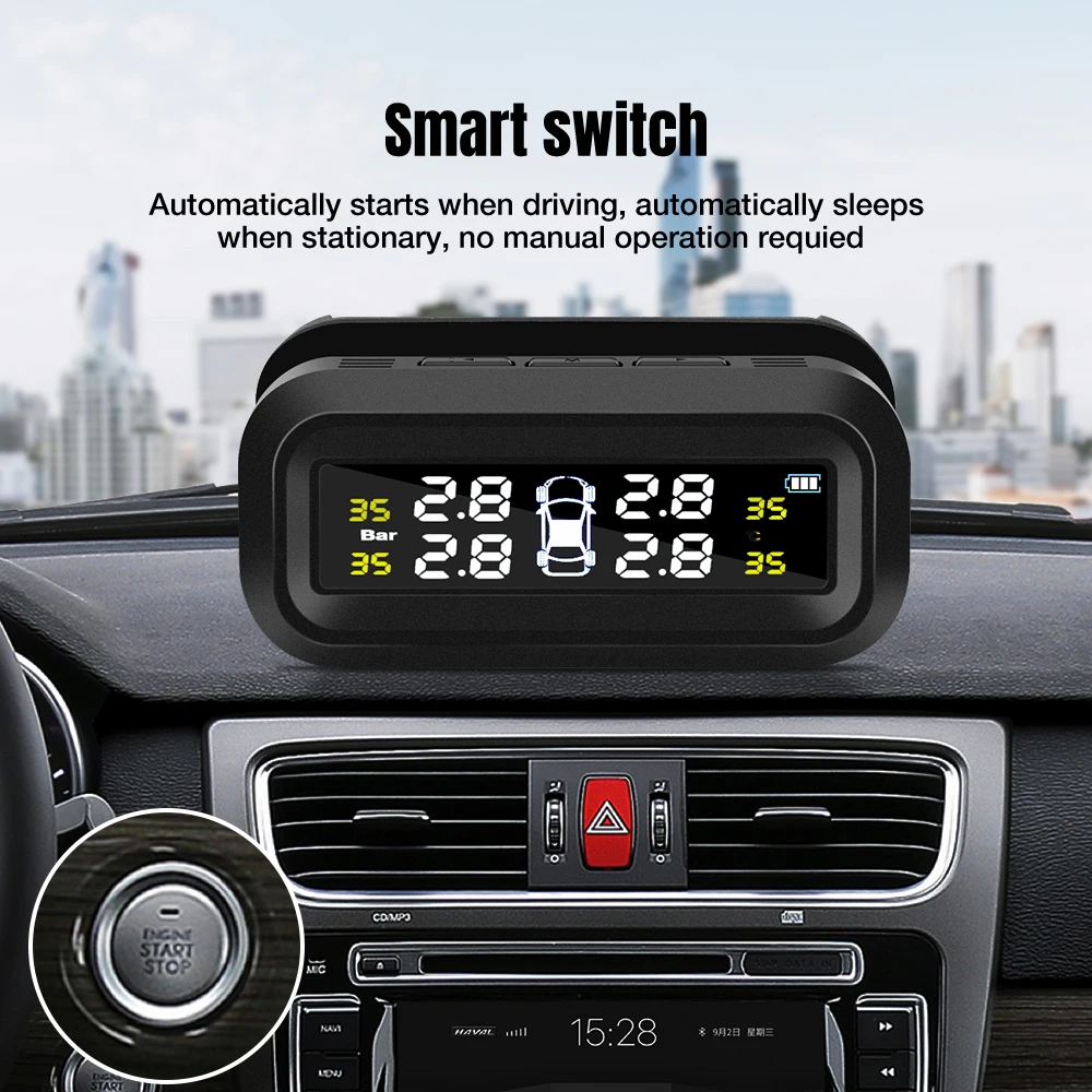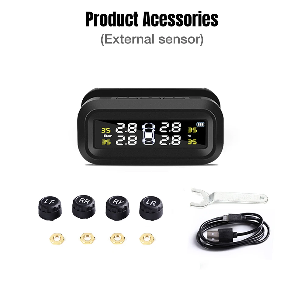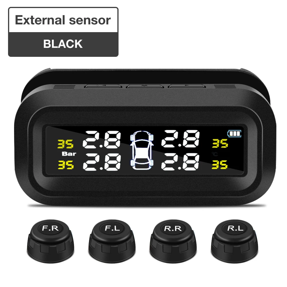 Датчик давления в шинах TPMS на солнечной батарее, цифровой дисплей, система контроля давления в шинах автомобиля, сигнализация, предупреждение о температуре