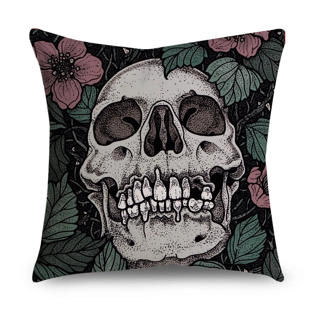 Наволочка с принтом черепа на Хэллоуин с одной стороны, декоративная наволочка с бабочкой и цветочным принтом на спине, винтажный диван, домашний стул для автомобиля