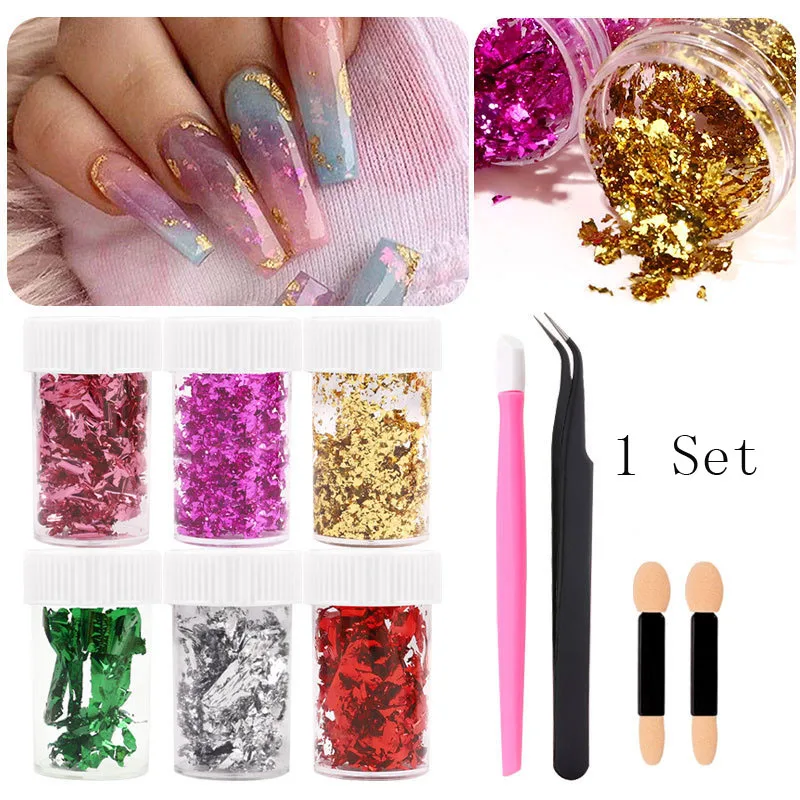 Новые бутилированные декоративные хлопья из сломанной золотой и серебряной фольги для творчества и ногтевого дизайна, бумажные хлопья цвета розового золота, объемные украшения для ногтей