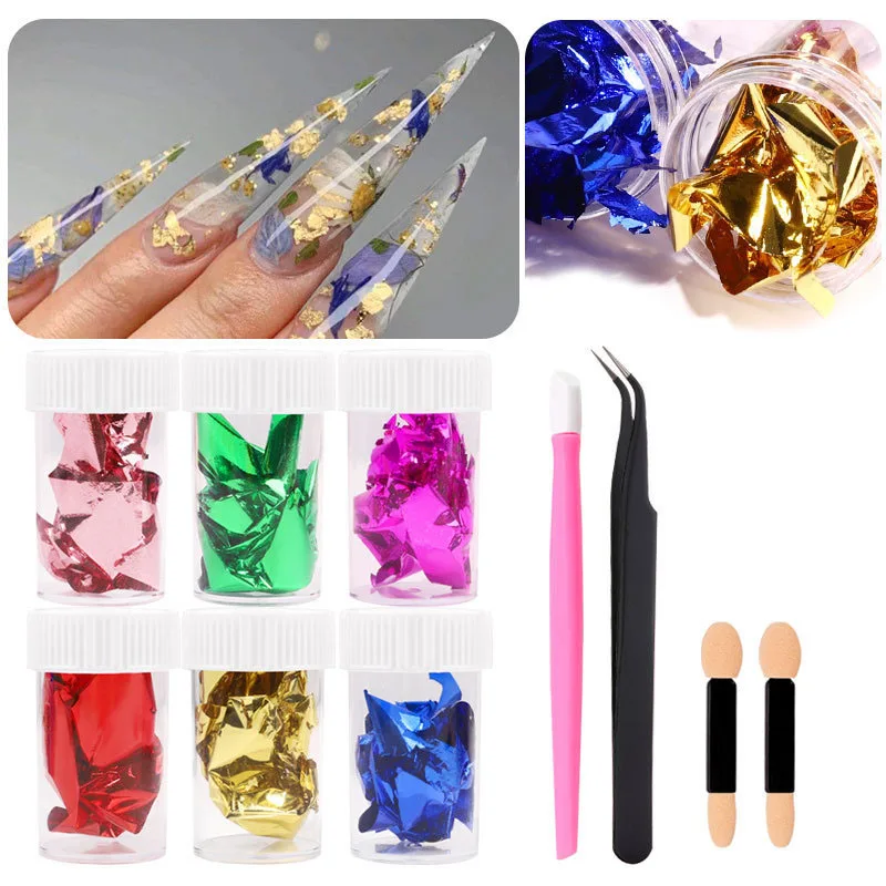 Сломанной золото, серебро, алюминий Фольга Комплект нейл-арта Стике...